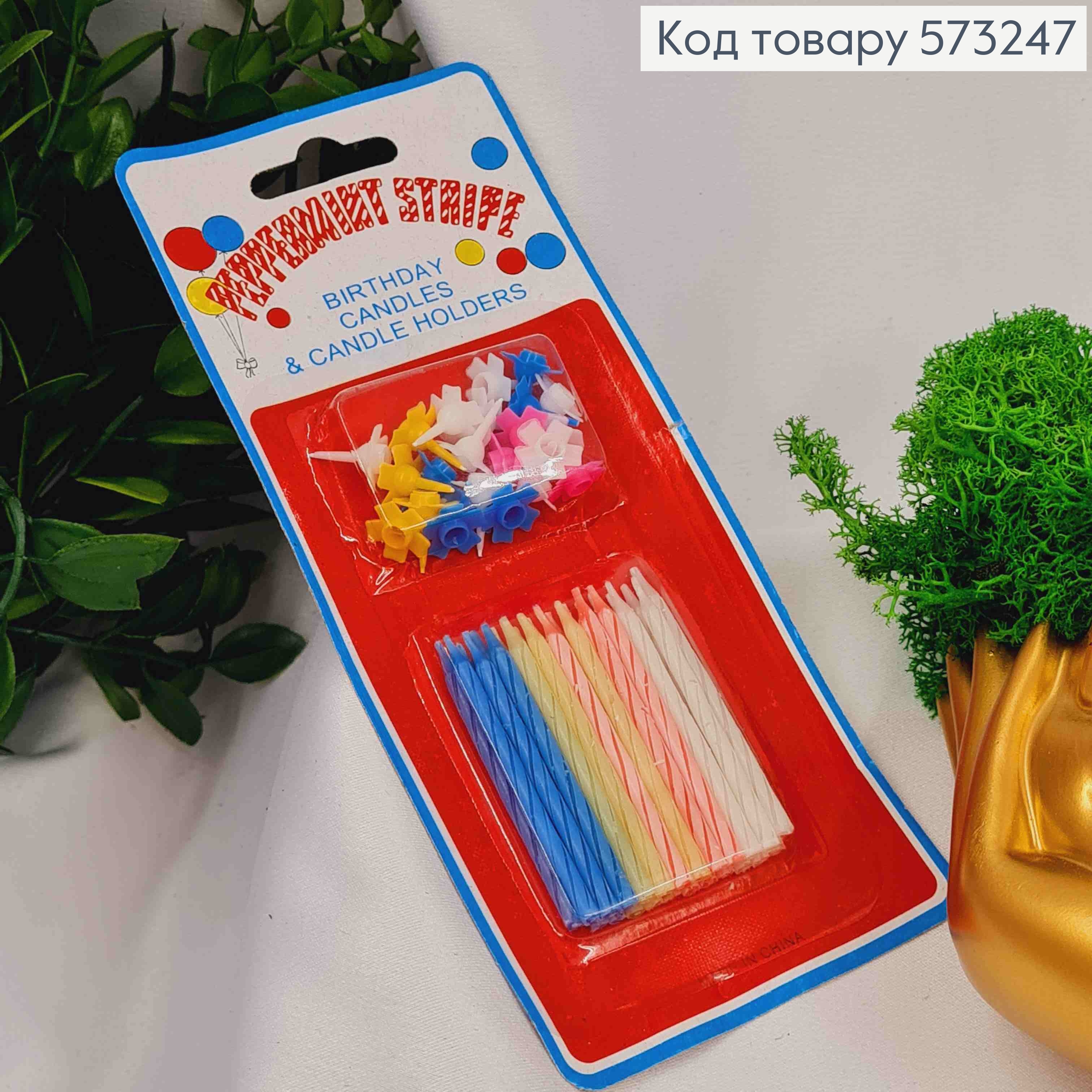 Свечи для торта Цветные с подставками, 24шт/уп, 5+1см