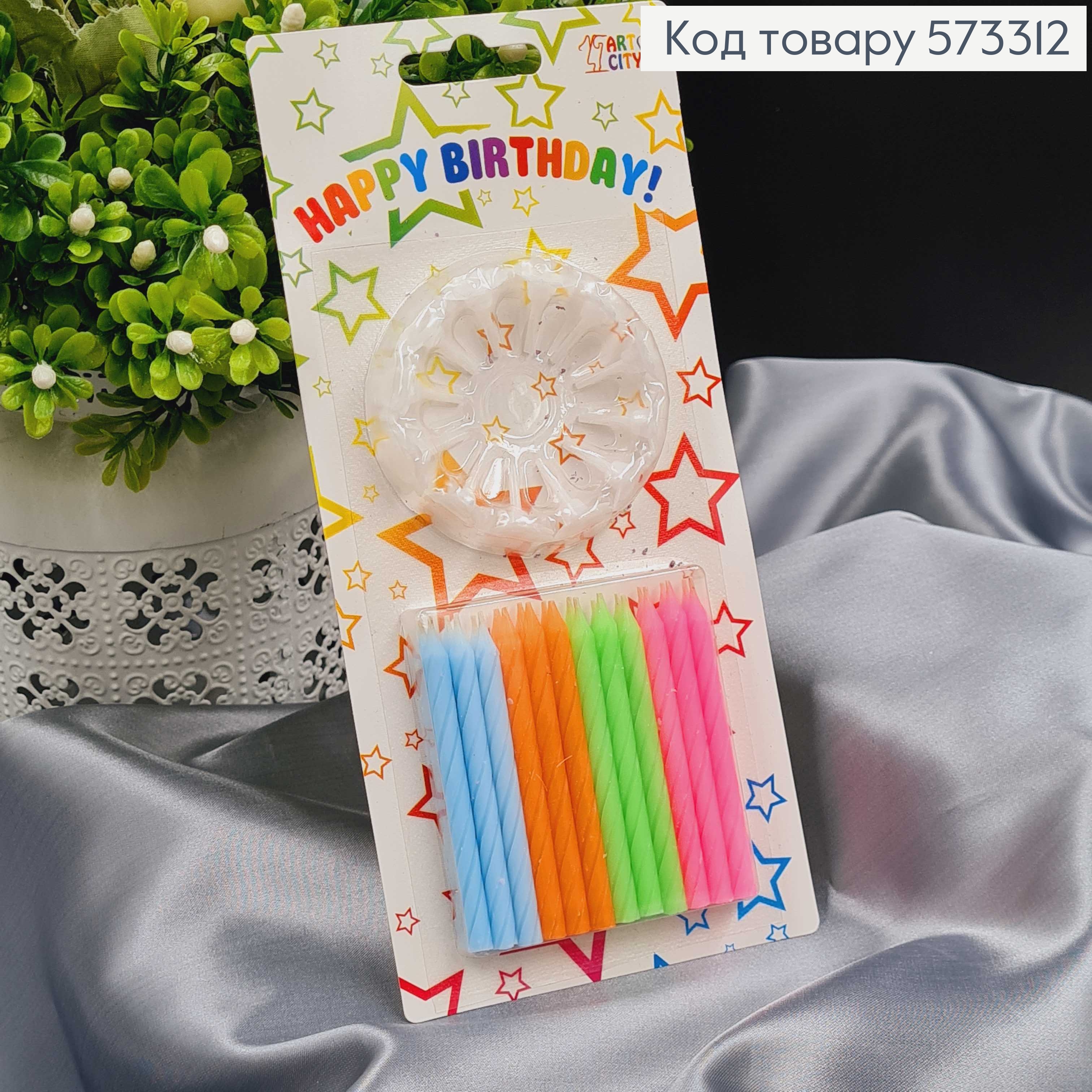 Свечки для торта Цветные с подставками, 24шт/уп, 7+2см, Украина
