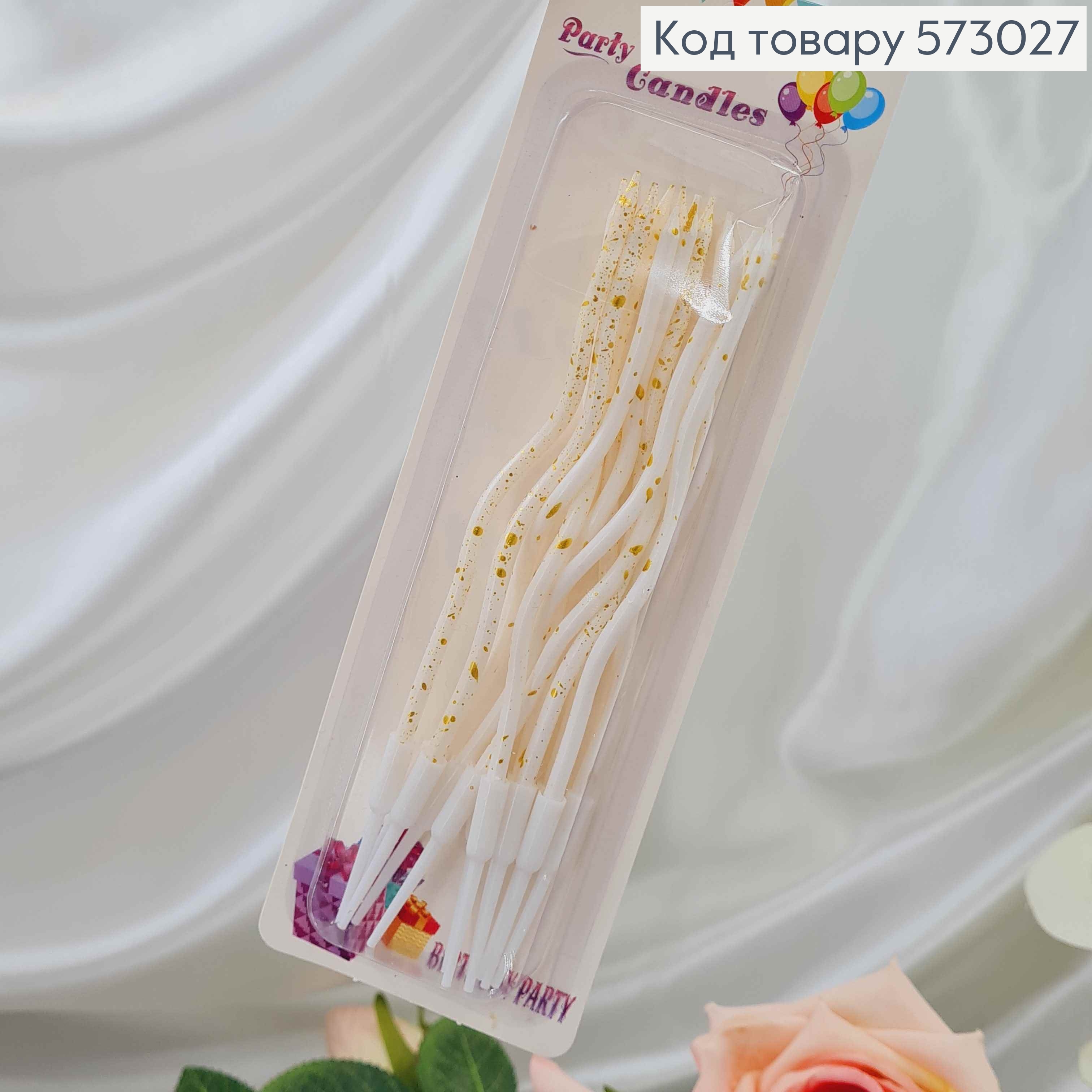 Свечи для торта крученые (6шт/уп)белые с золотыми крапинками,15см