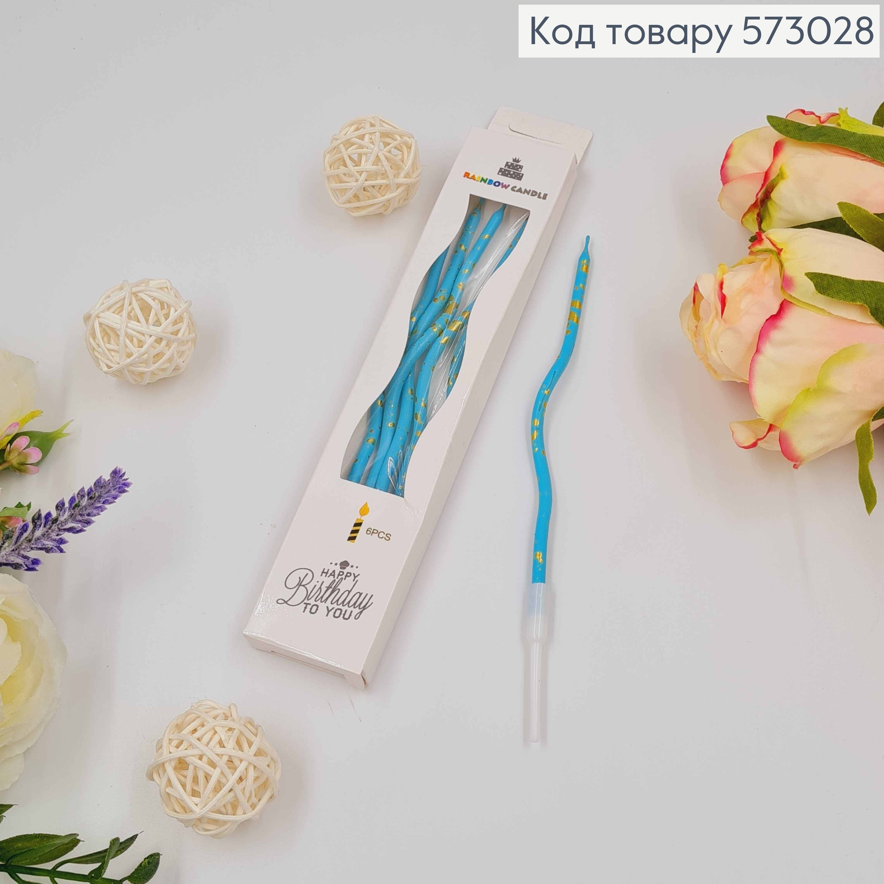 Свечи для торта, винтовые, Бирюзовые с золотыми вкраплениями, 6шт/уп. 11,5+4см