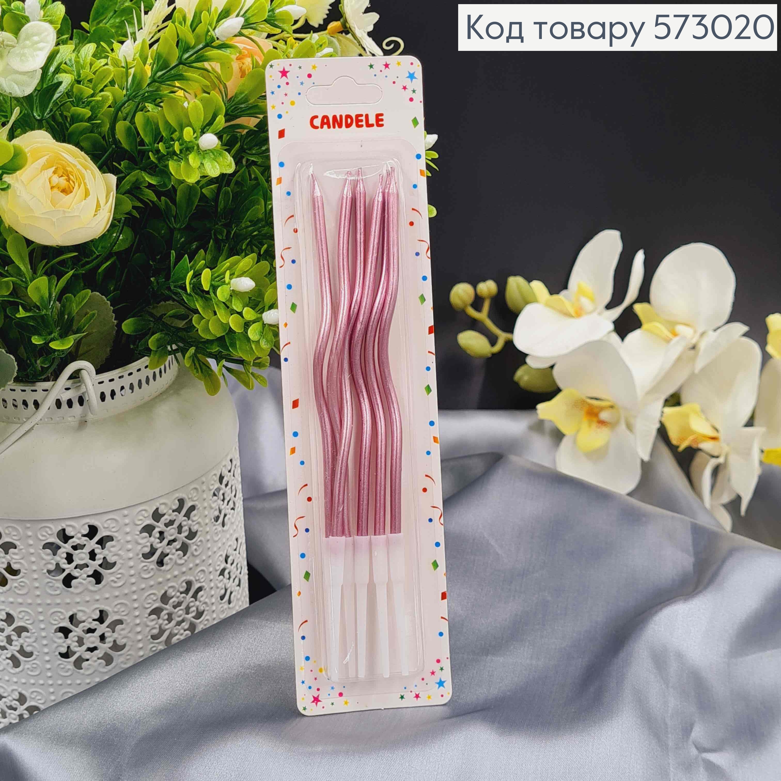 Свечи для торта, винтовые, Розовые пастель.(металлик), 6шт/уп. 12+4см