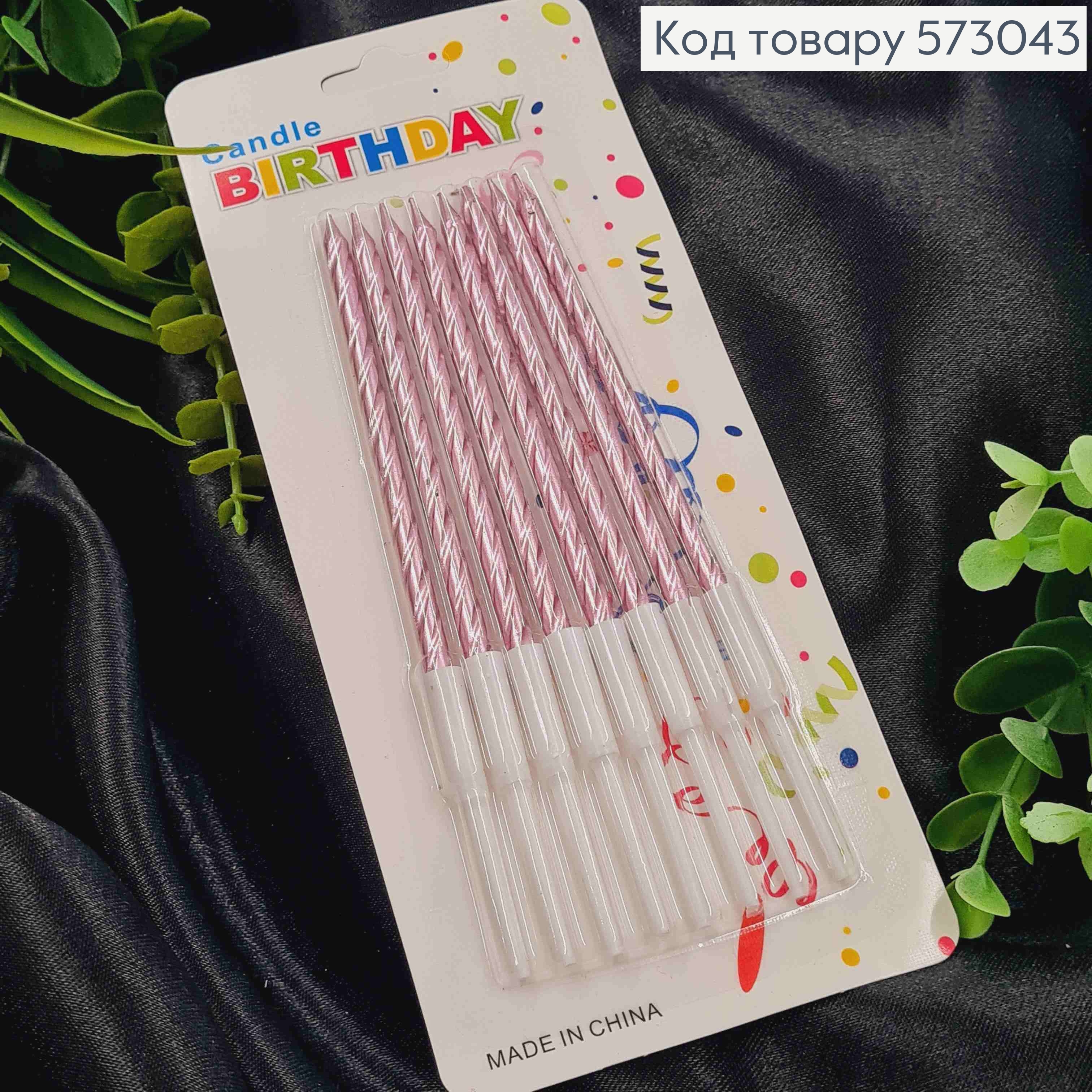 Свечи для торта Крученые, Розовые с подставками, 8шт/уп, 8,5+4,5см