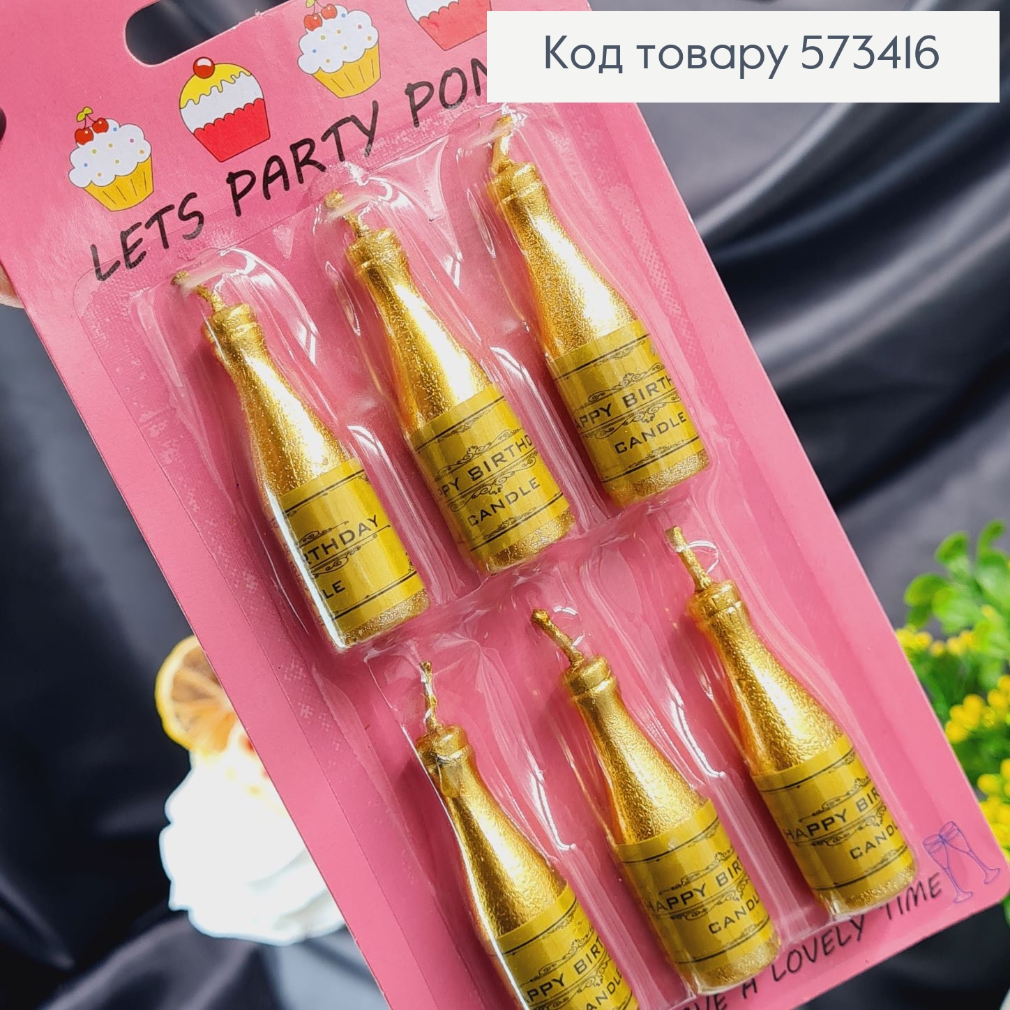 Свечки для торта "Бутылка Шампанского" Золото, 6шт/уп., 5см