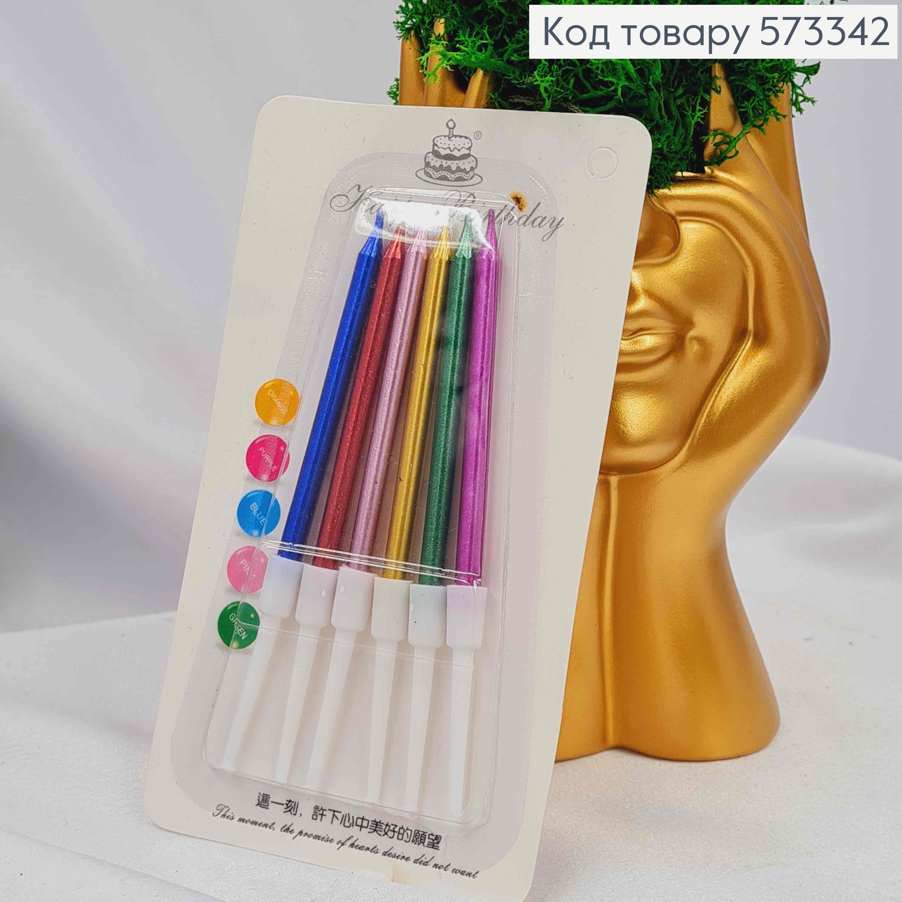 Свечи для торта Разноцветные с подставками, 6шт/уп, 6,5+3,5см