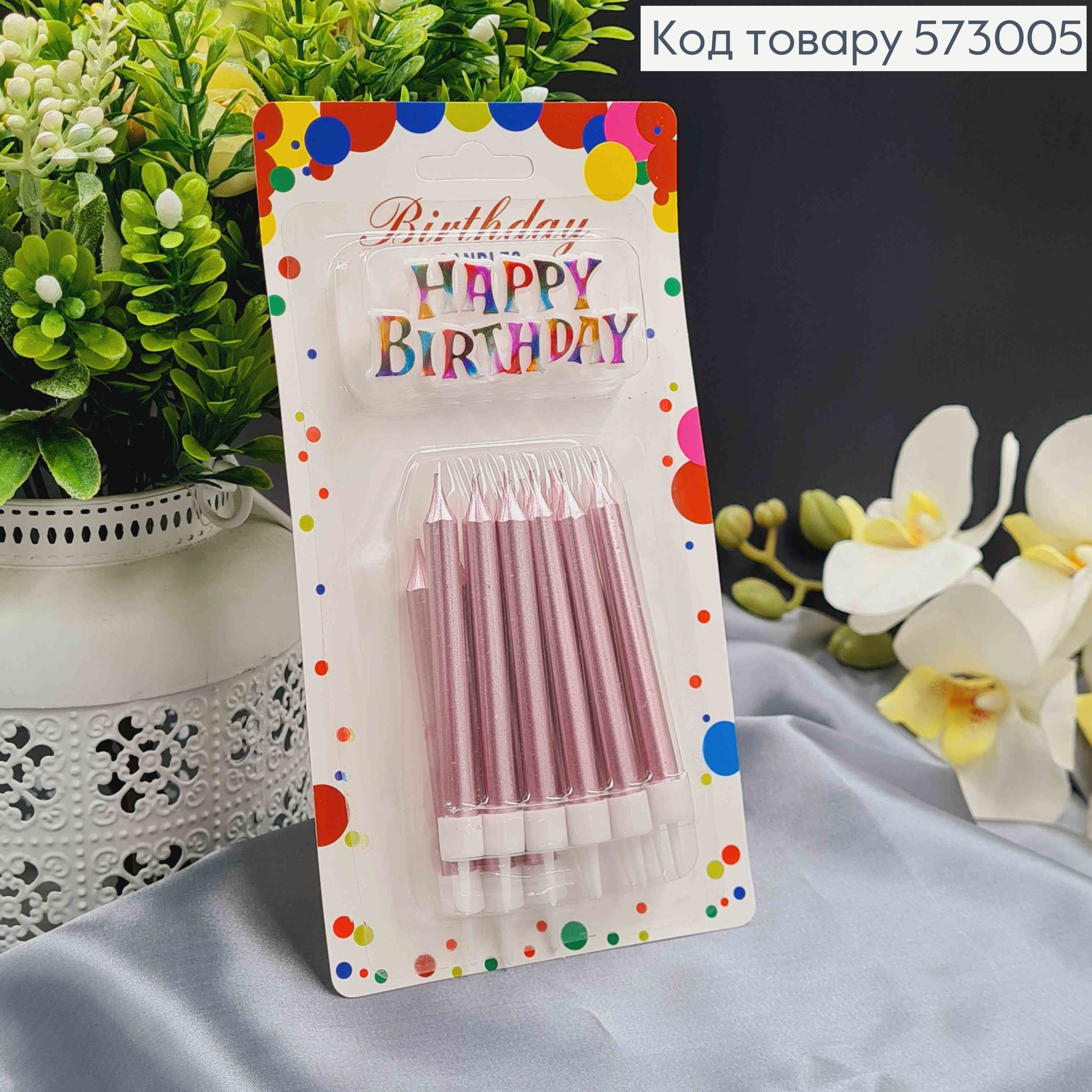 Свечи для торта, Розовые + Happy Birthday, 12шт/уп, 7+2см