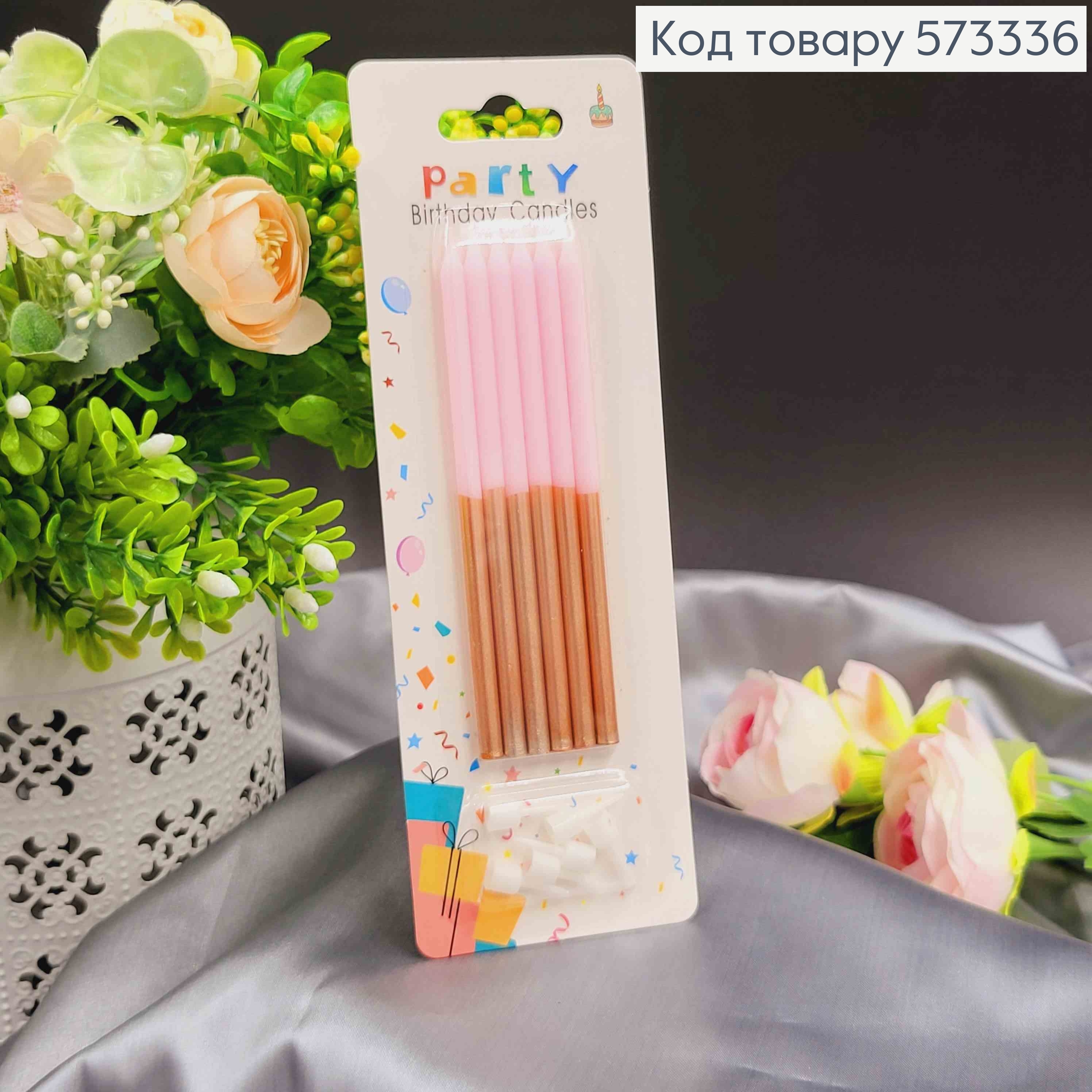 Свечи для торта, Розовые+Золото, 12,5+2см, 6шт./уп