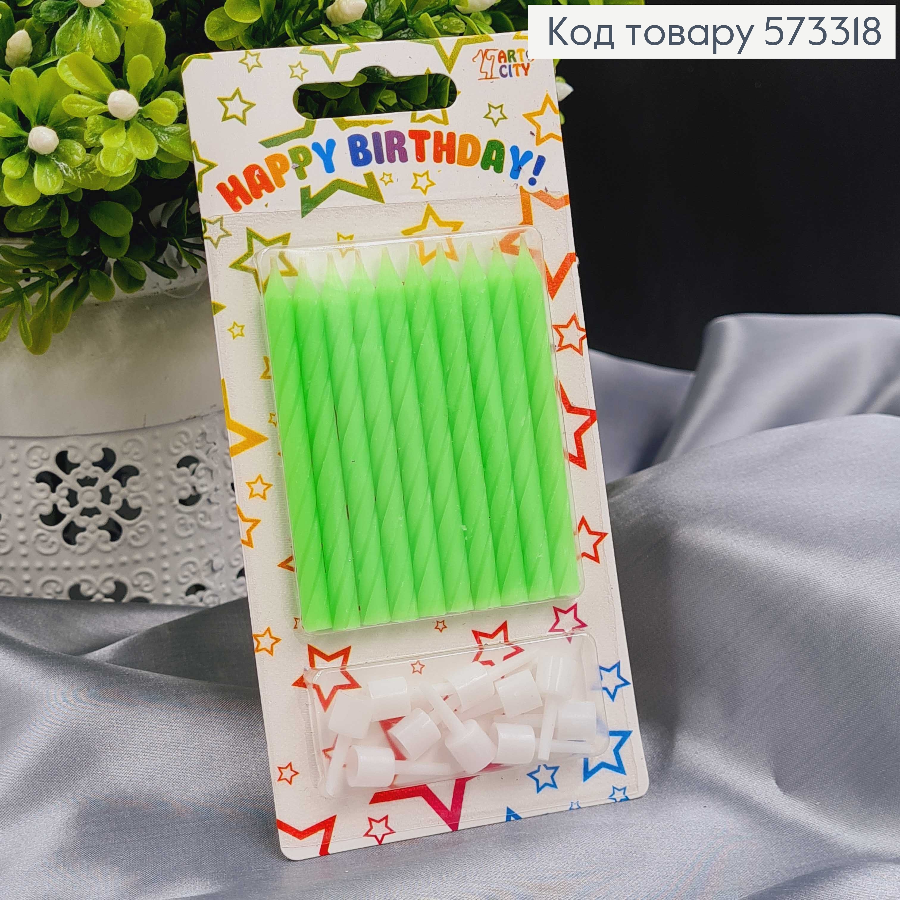 Свечки для торта Салатовые с подставками, 10шт/уп, 7+2см, Украина