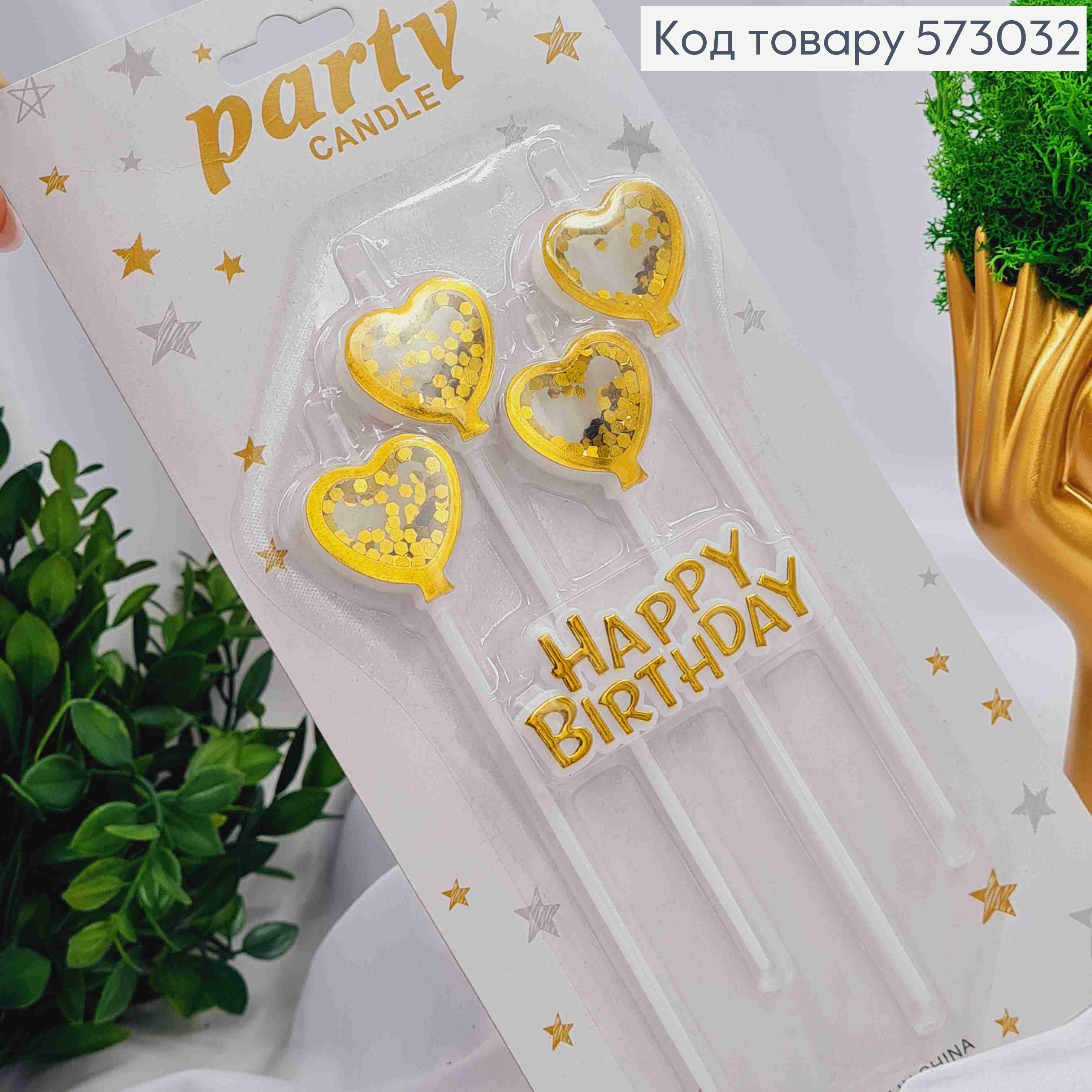 Свечи для торта Сердце с Золотыми блестками (4шт/уп, 3+11см) и надпись "HAPРY BIRTHDAY" (2,5*6,5см)