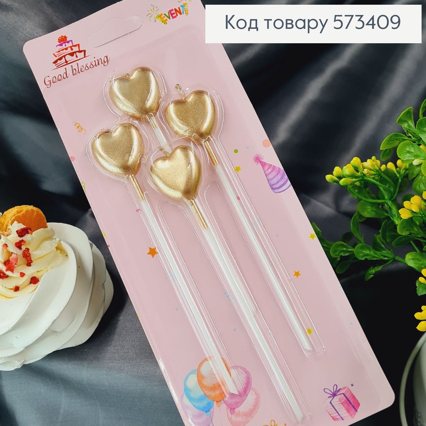 Свечки для торта Сердечка Шампань, 4шт/уп., 3+11см
