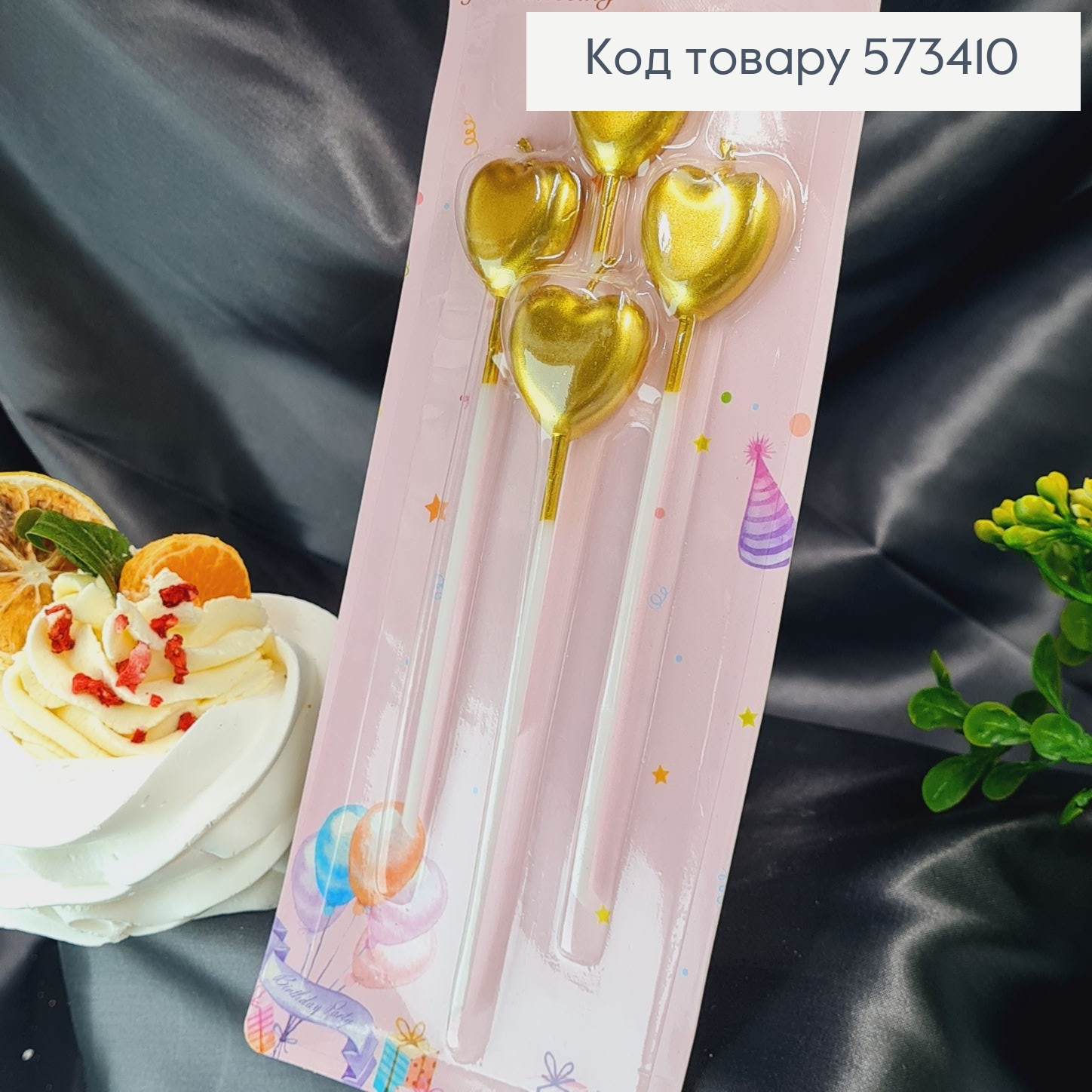 Свечки для торта Сердечка Золото, 4шт/уп., 3+11см