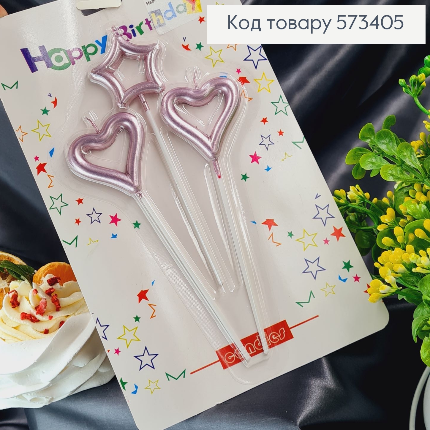 Свечки для торта Сердечко и Звездочка Лаванда, 3шт/уп., 4+11см
