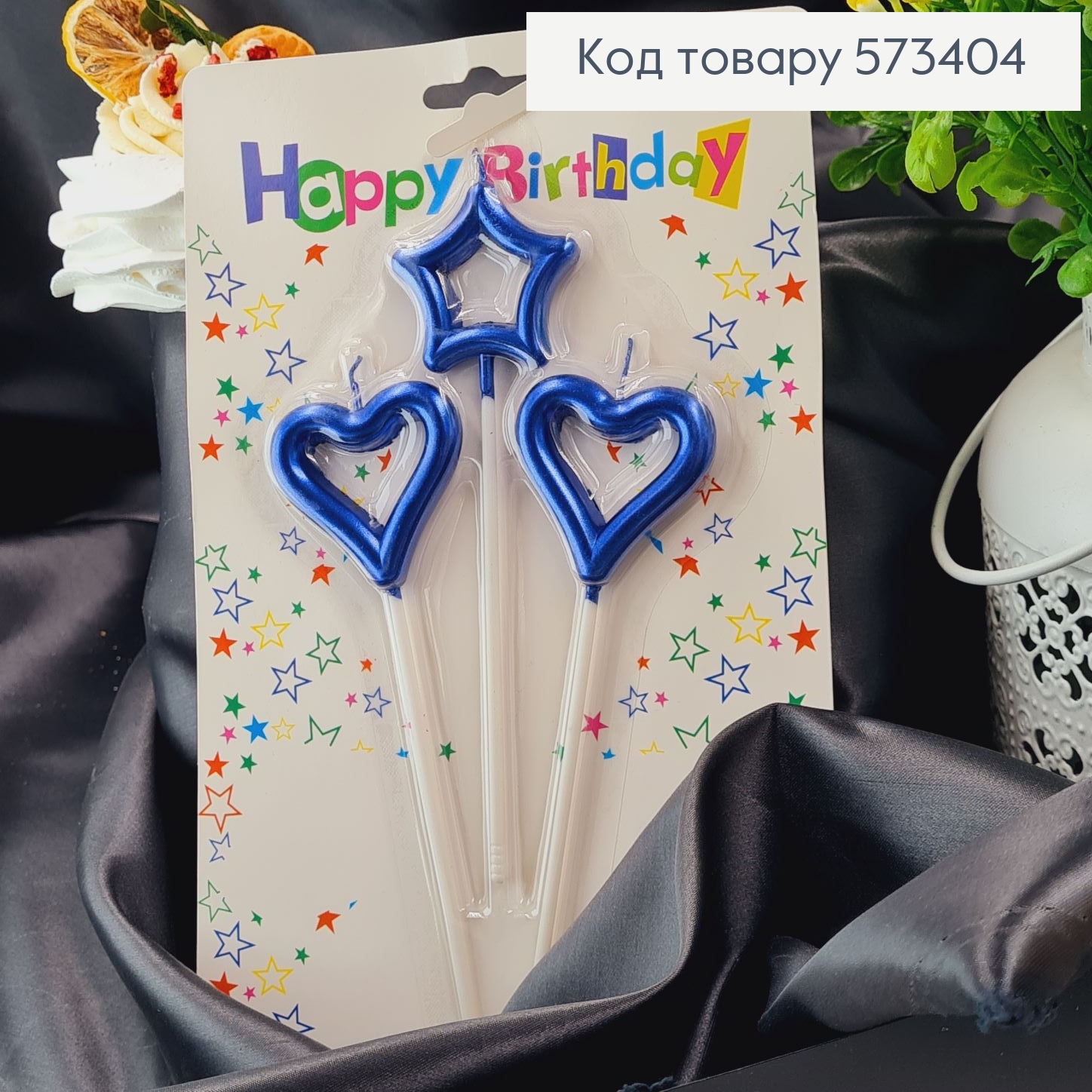 Свечки для торта Сердечко и Звездочка Синие, 3шт/уп., 4+11см