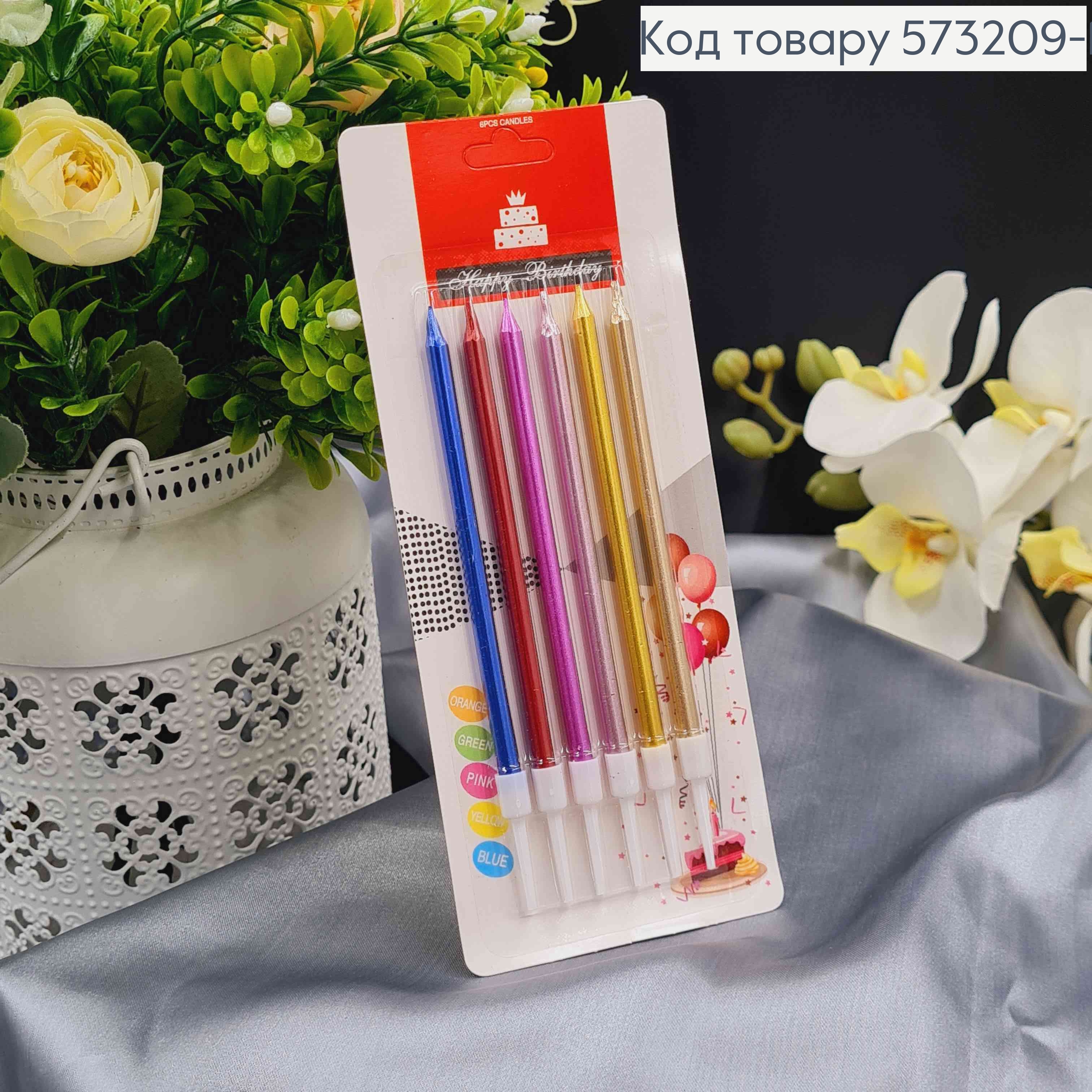 Свечи для торта Шесть цветов, с подставками 6шт/уп, 11+3см