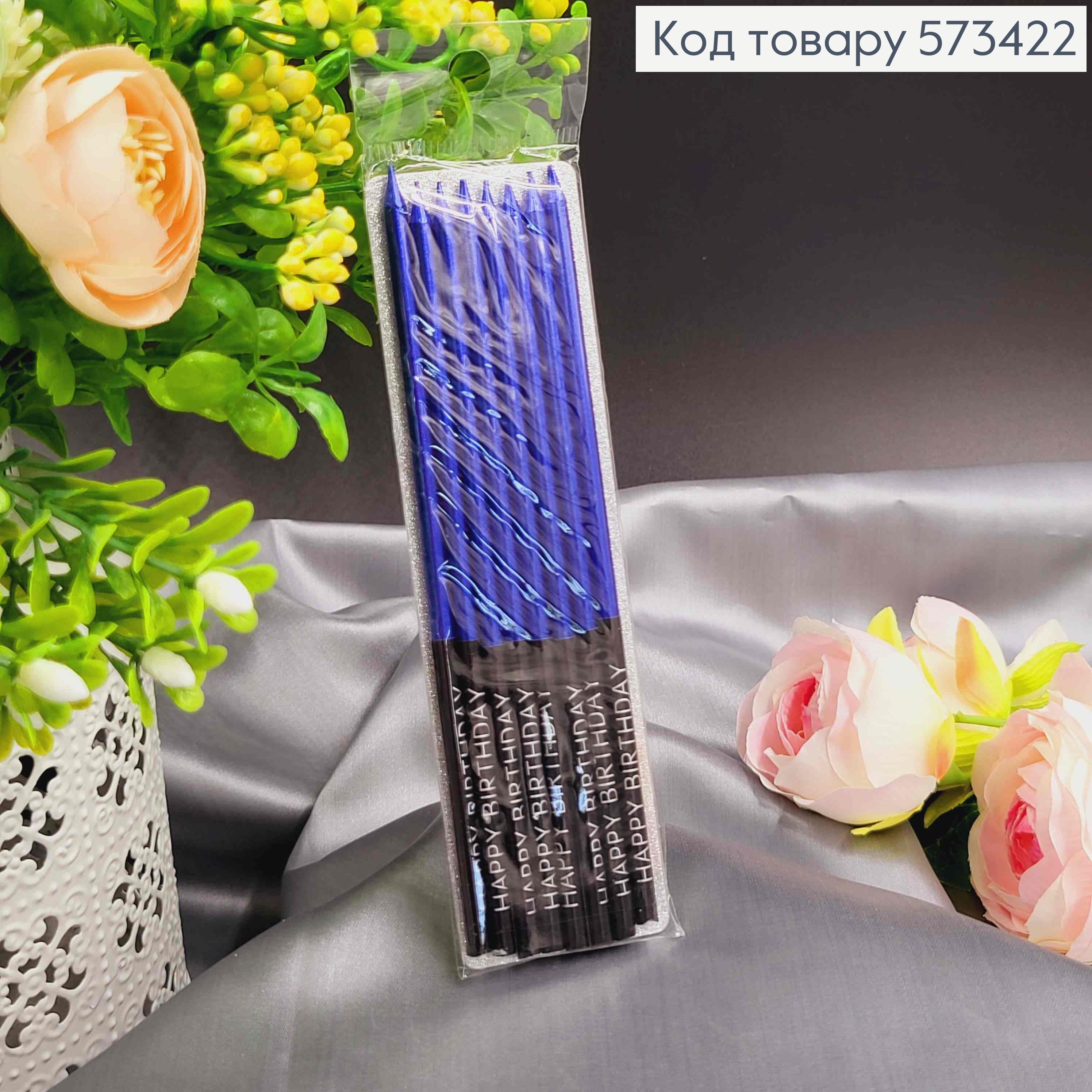 Свечи для торта, Синий металлик+Черное с надписью, 14,5см, 8шт./уп