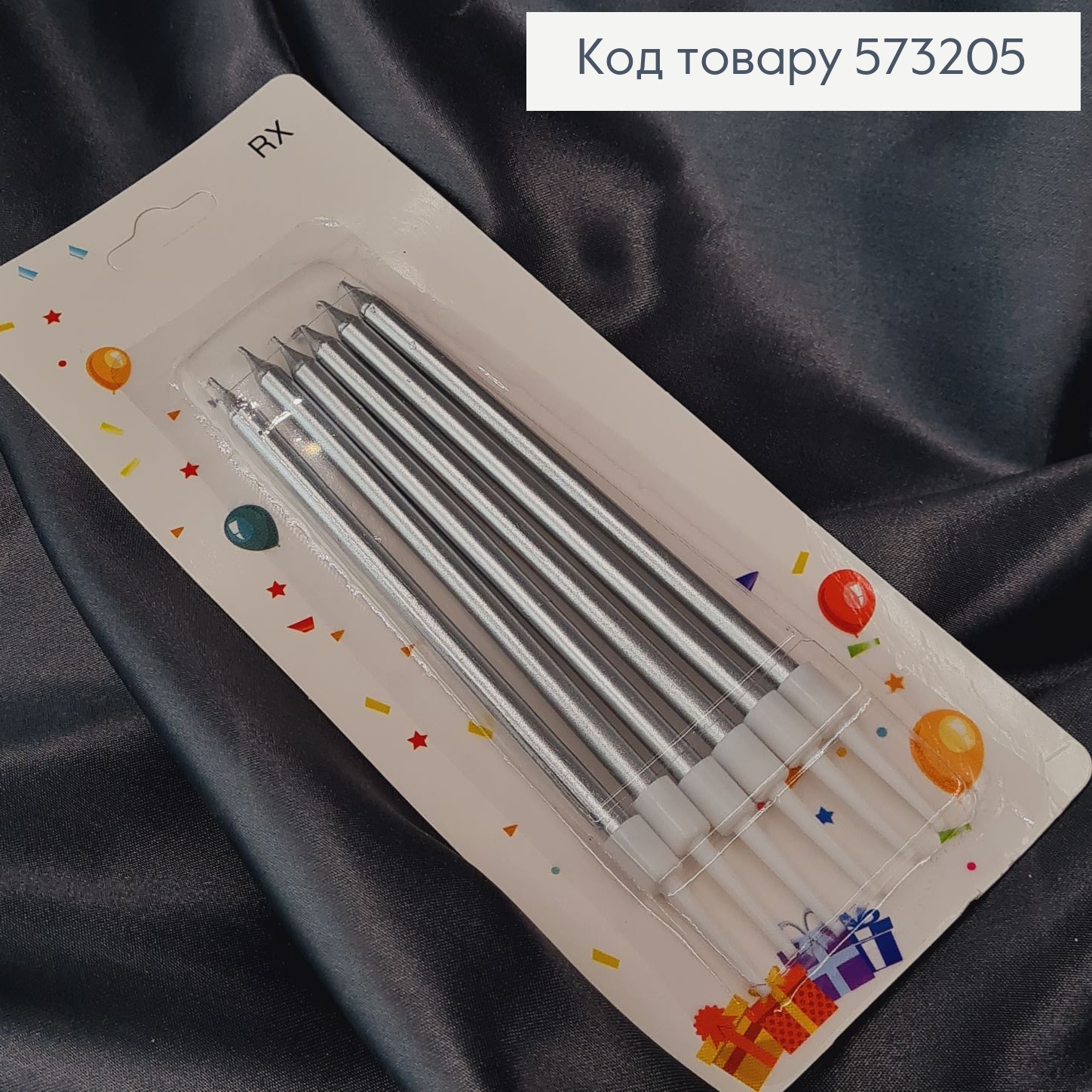 Свечки для торта Серебряные с подставками 6шт/уп, 10+2см