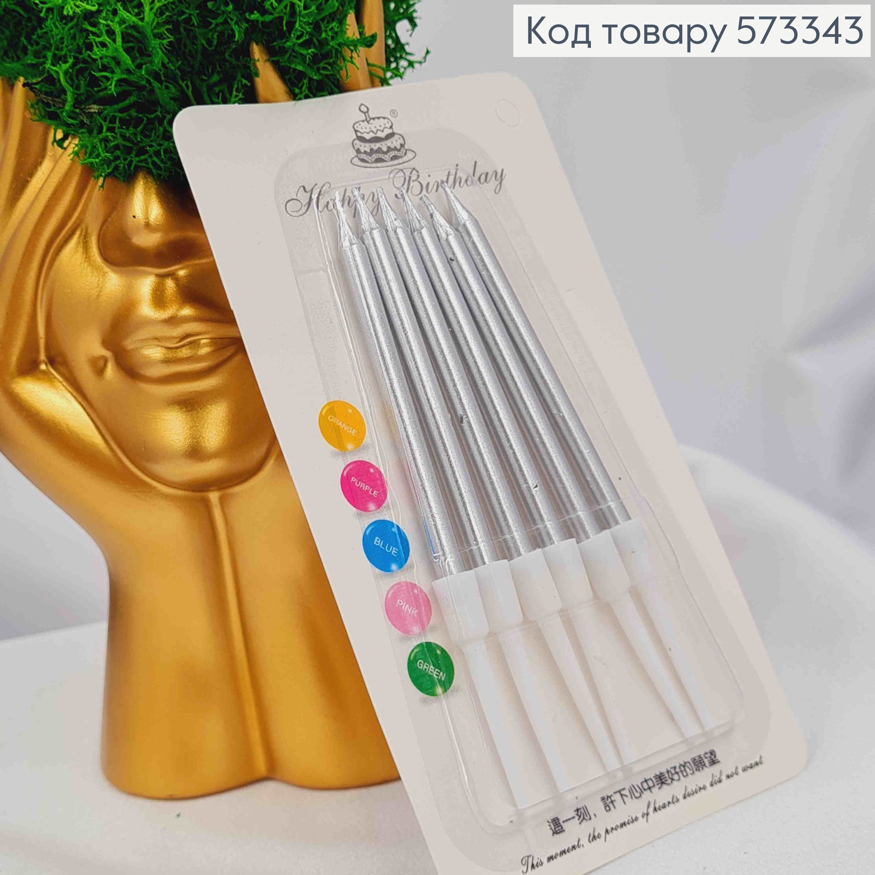 Свечи для торта Серебряные с подставками, 6шт/уп, 6,5+3,5см