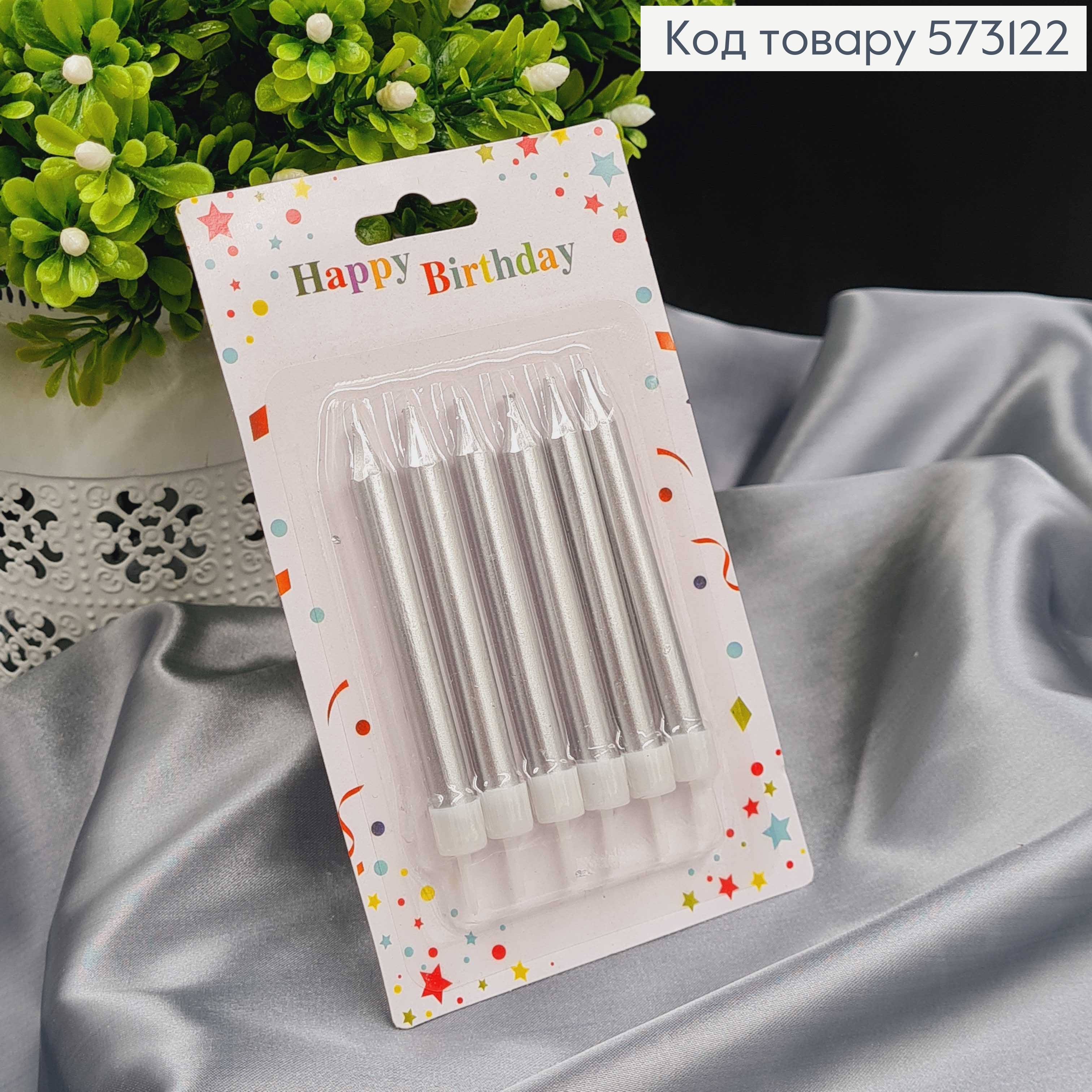 Свечи для торта Серебряные с подставками, 6шт/уп, 7,5+2см