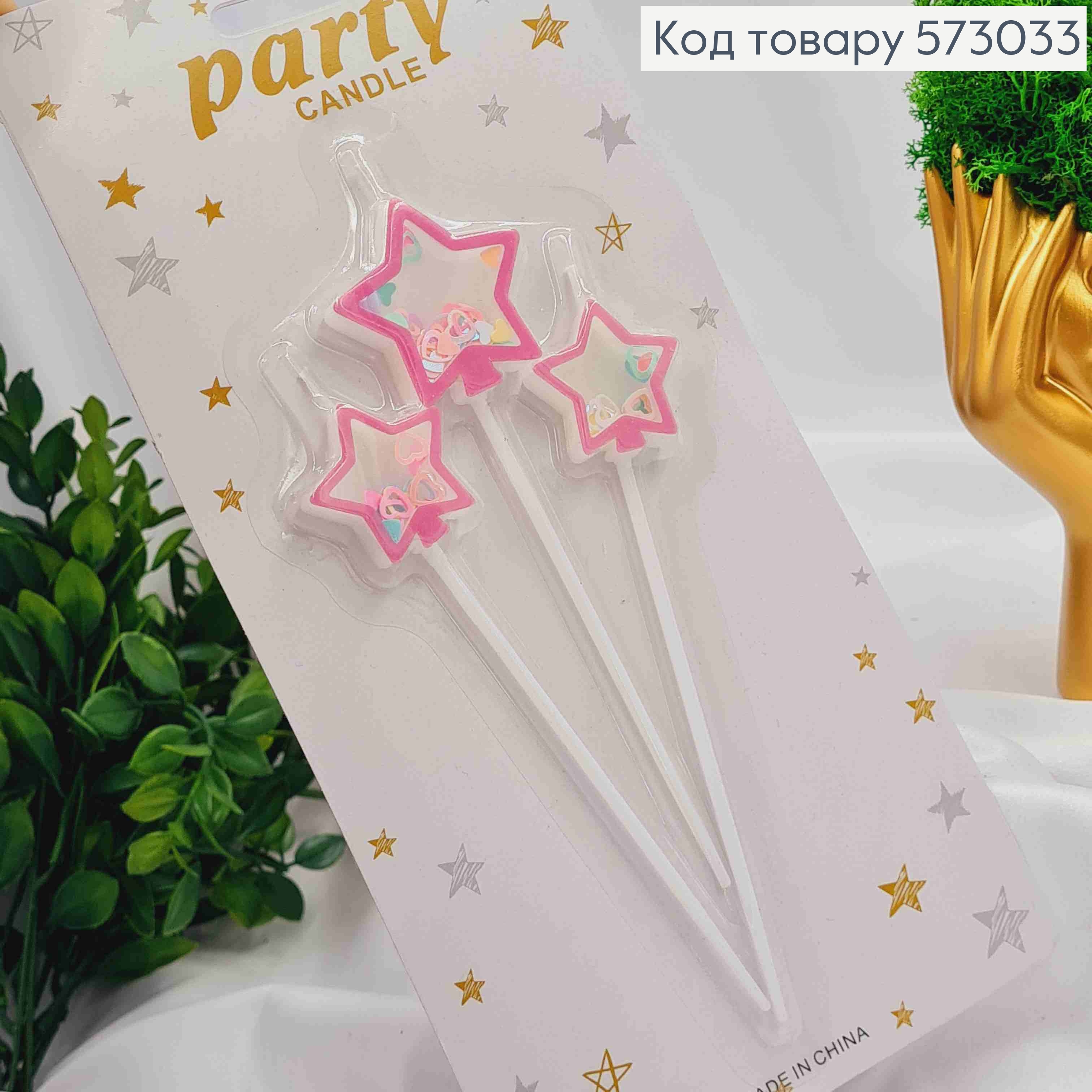 Свечи для торта "Звездочки", Розового цвета с глитером, 3шт/уп., 3,5+10см 573645 фото