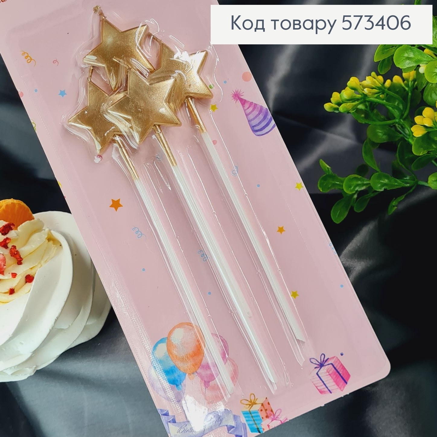 Свечи для торта "Звездочки", Золотого цвета с глитером, 3шт/уп., 3,5+10см 573641 фото