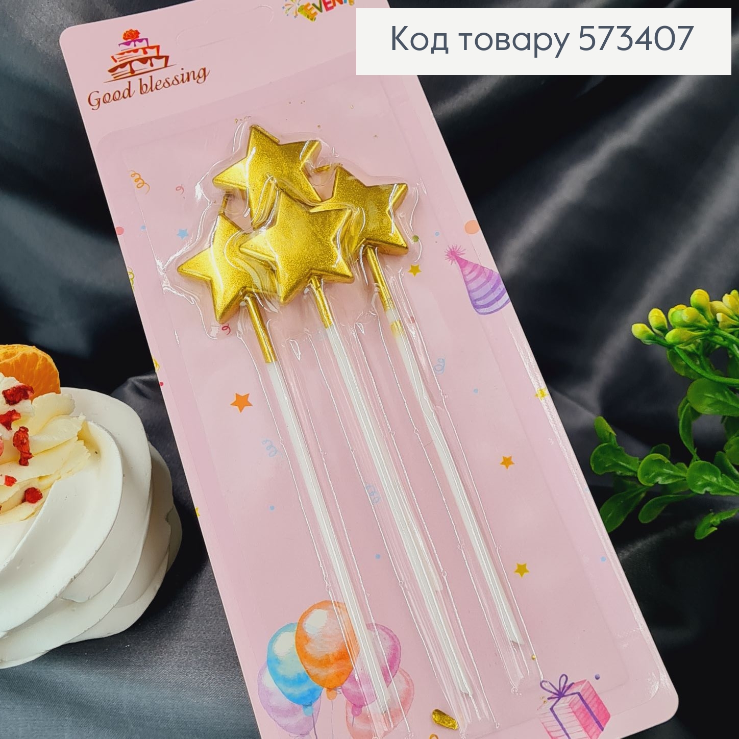 Свечи для торта "Звездочки", Золотого цвета с глитером, 3шт/уп., 3,5+10см 573641 фото