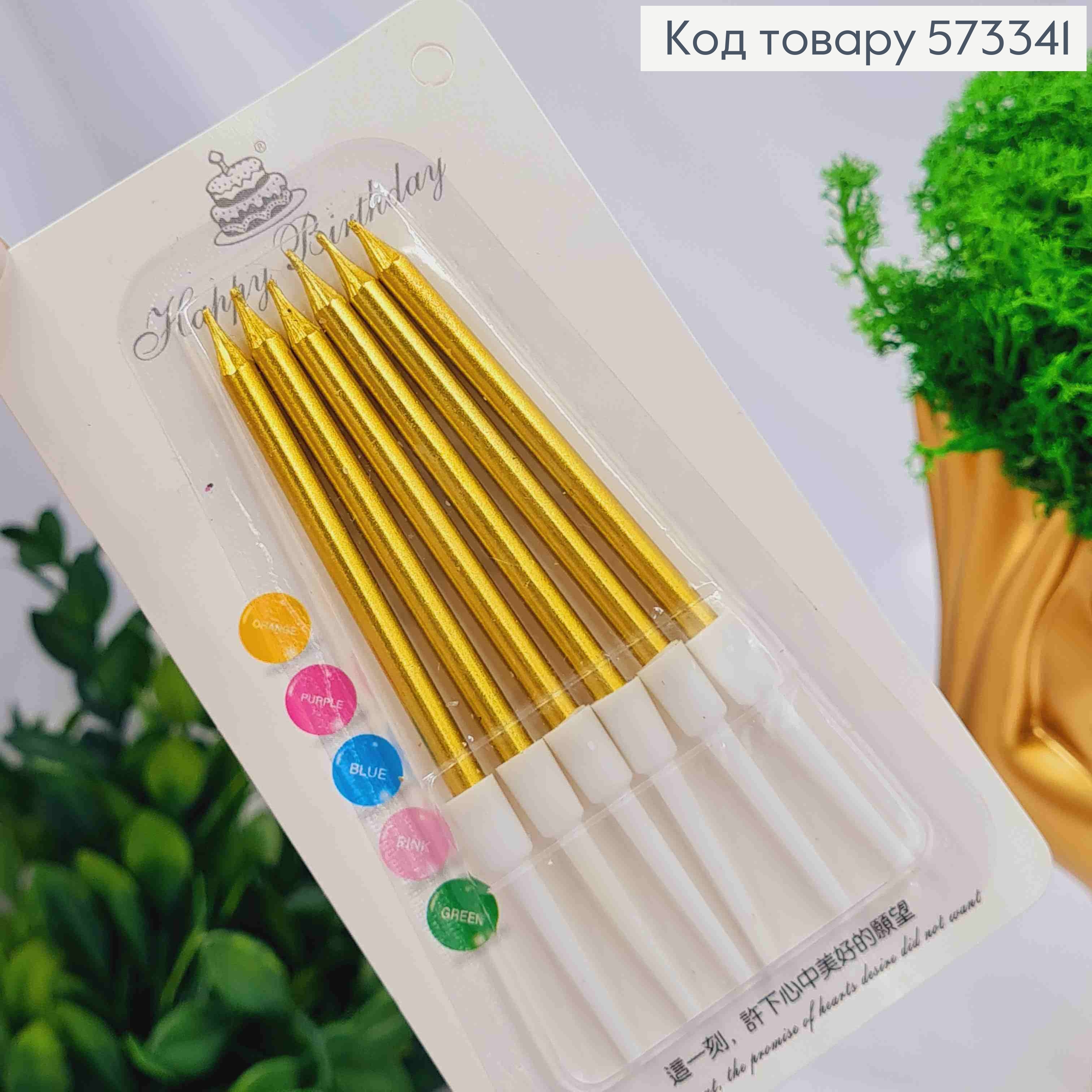 Свечи для торта Золотые с подставками, 6шт/уп, 6,5+3,5см
