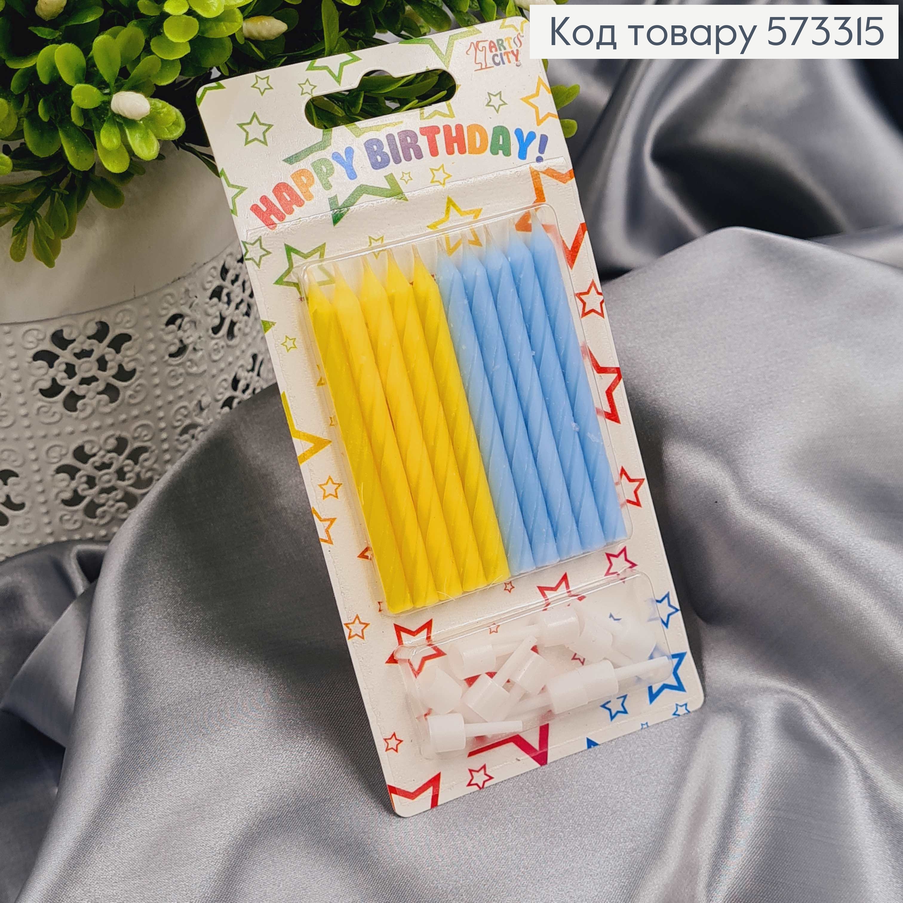 Свечки для торта Желтые и Голубые с подставками, 10шт/уп, 7+2см, Украина