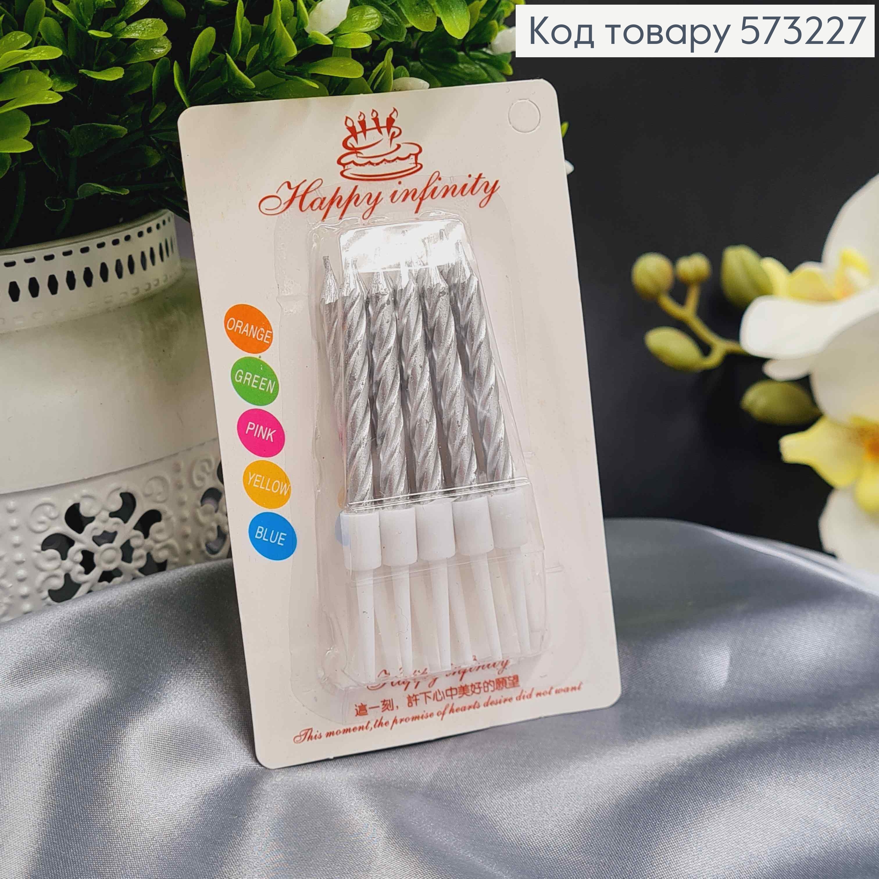 Свечи для торта Крученые, СЕРЕБРЯНЫЕ с глитером, 12шт/уп, 11+4см 573638 фото