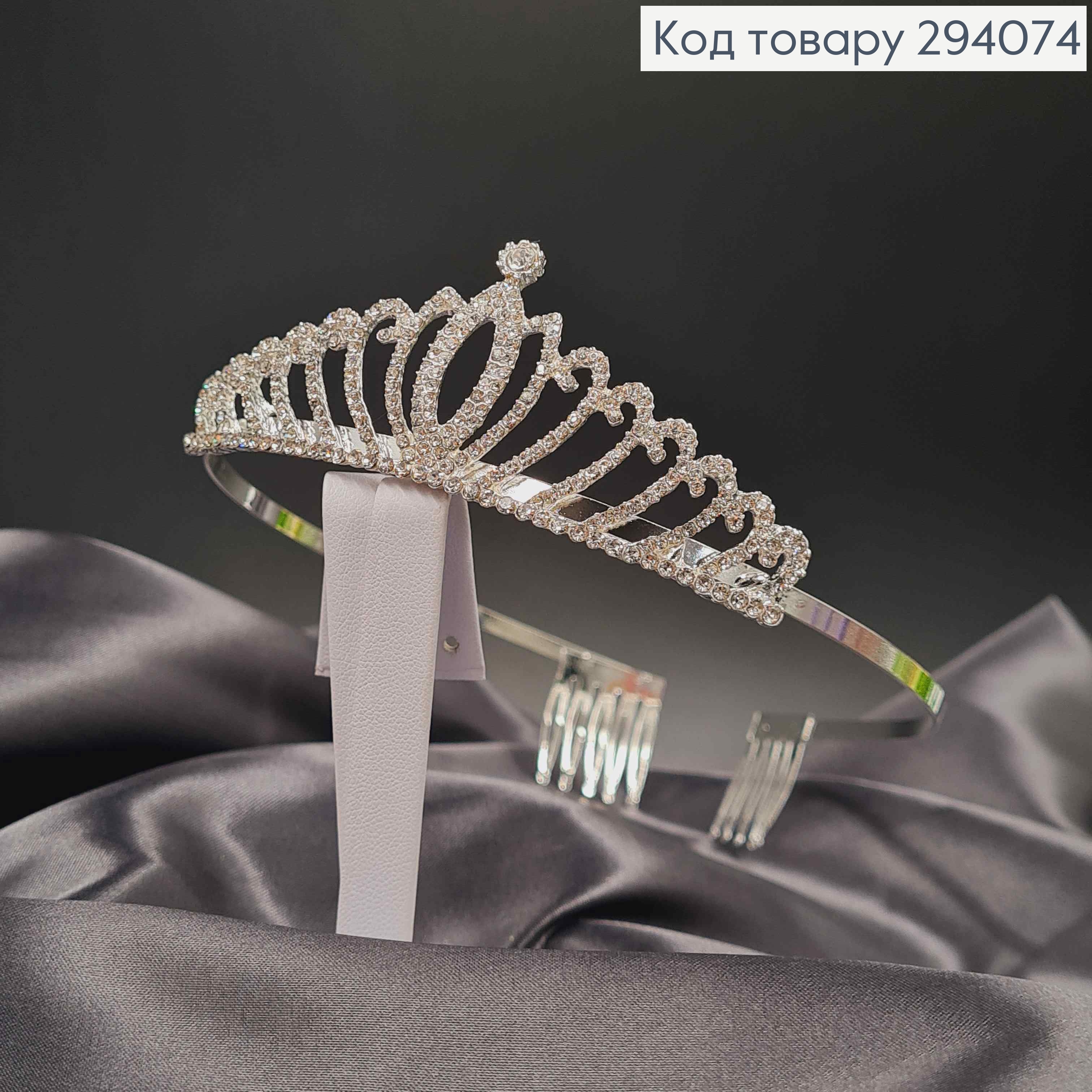 Тиара под серебро, "Флоренцо" с Блестящими камешками, 4см самая высокая точка 294163 фото