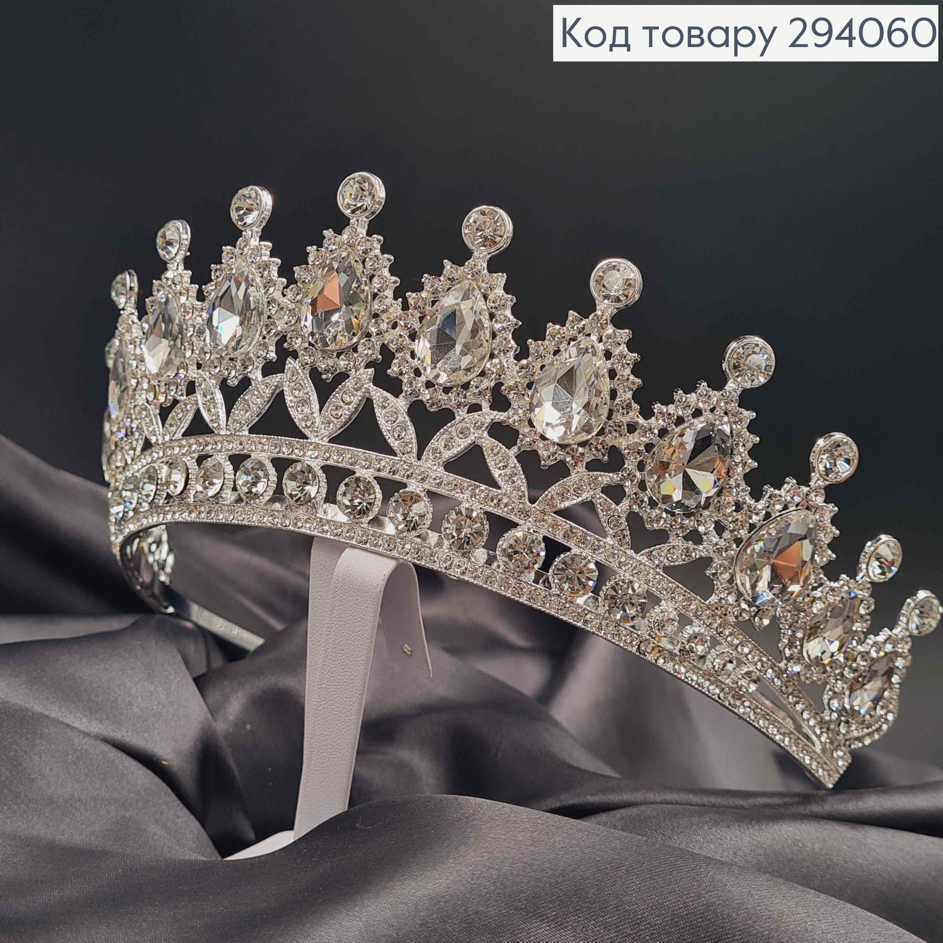 Тиара под серебро, "Флоренцо" с Блестящими камешками, 4см самая высокая точка 294163 фото