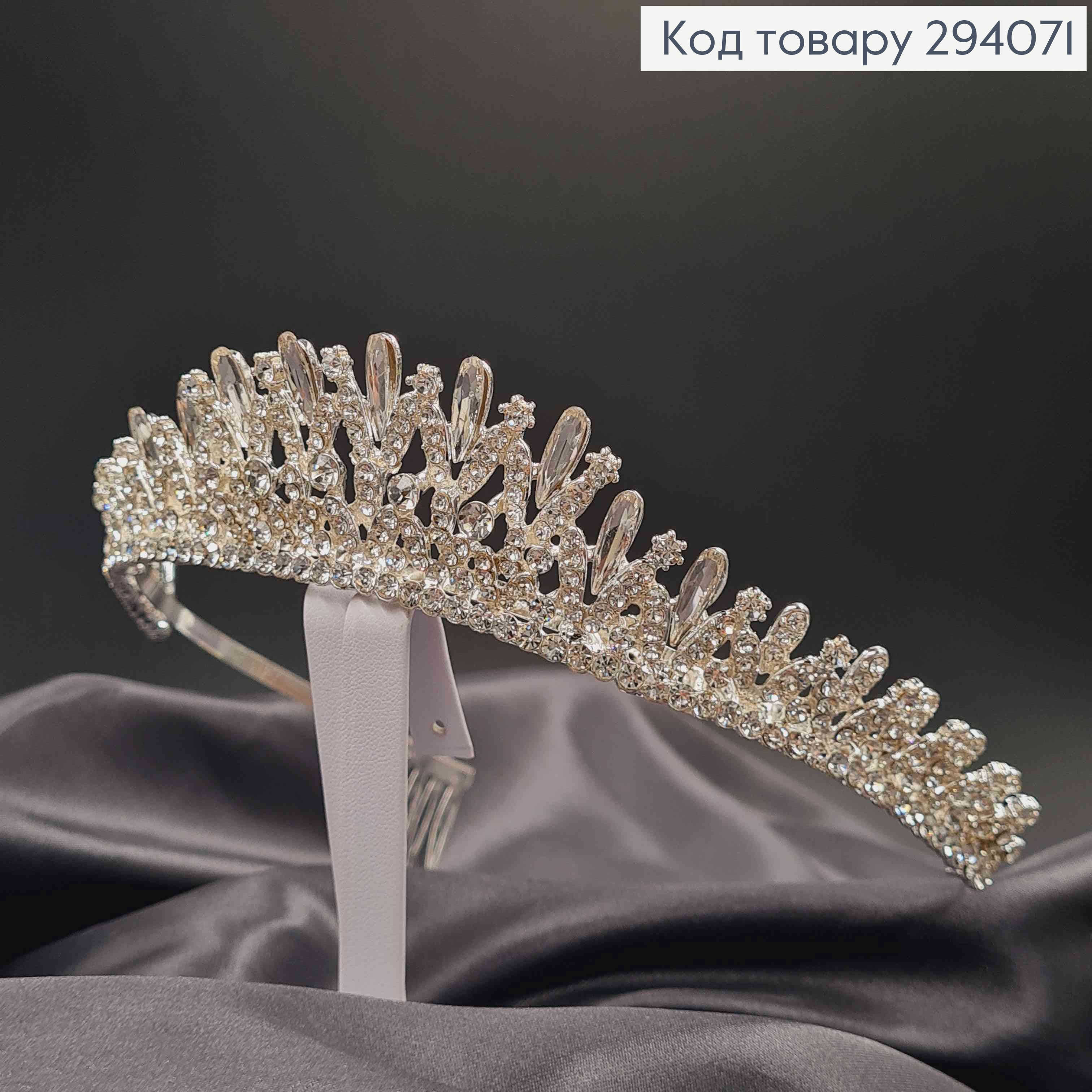 Тиара под серебро, "Флоренцо" с Блестящими камешками, 4см самая высокая точка 294163 фото