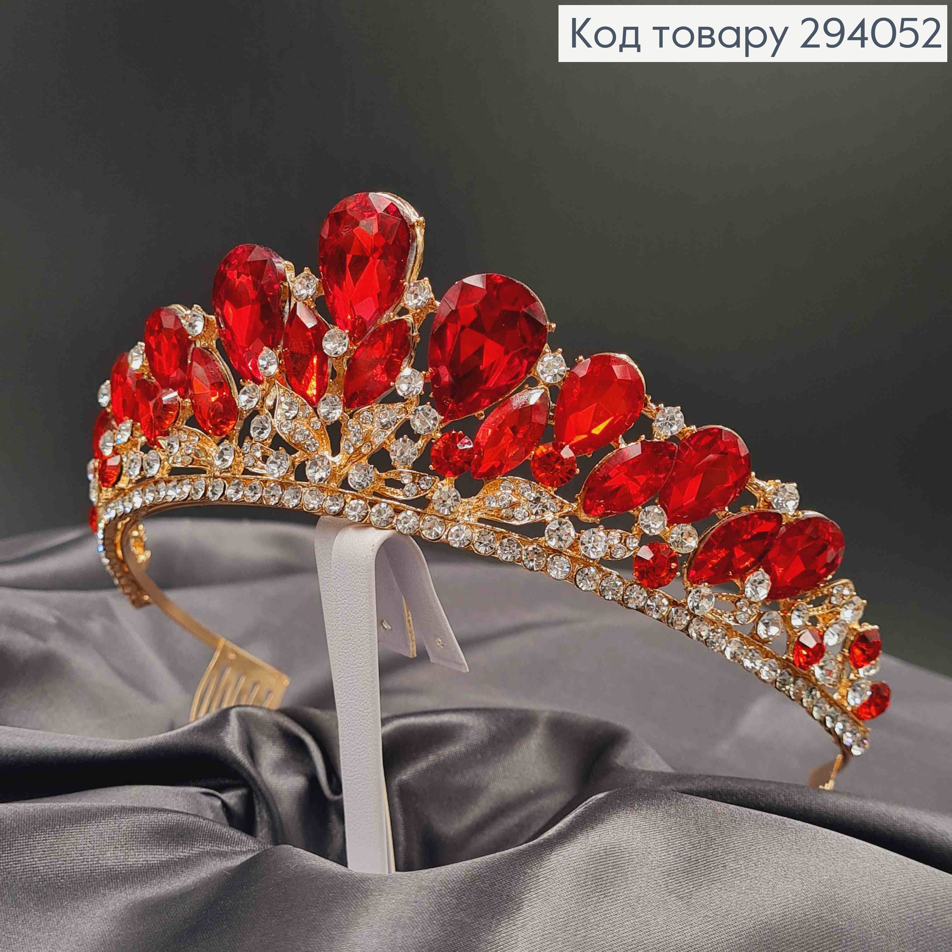 Диадема "Великая" под золото, с Красными блестящими камешками, 6см наивысшая точка 294165 фото