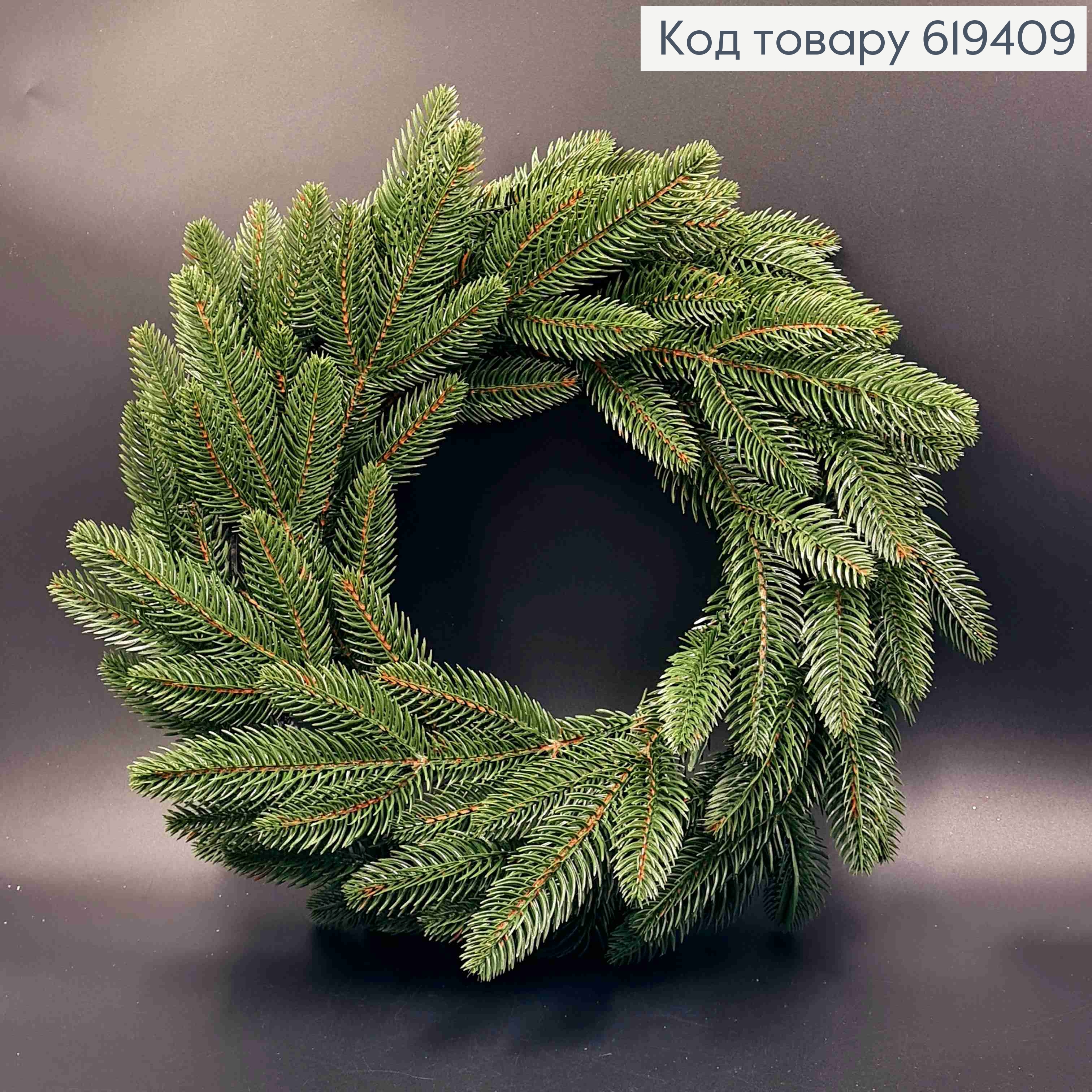 Віночок Новорічний, СВІТЛО-ЗЕЛЕНІ Кінці, діаметр 45см, на пластиковій основі 619408 фото