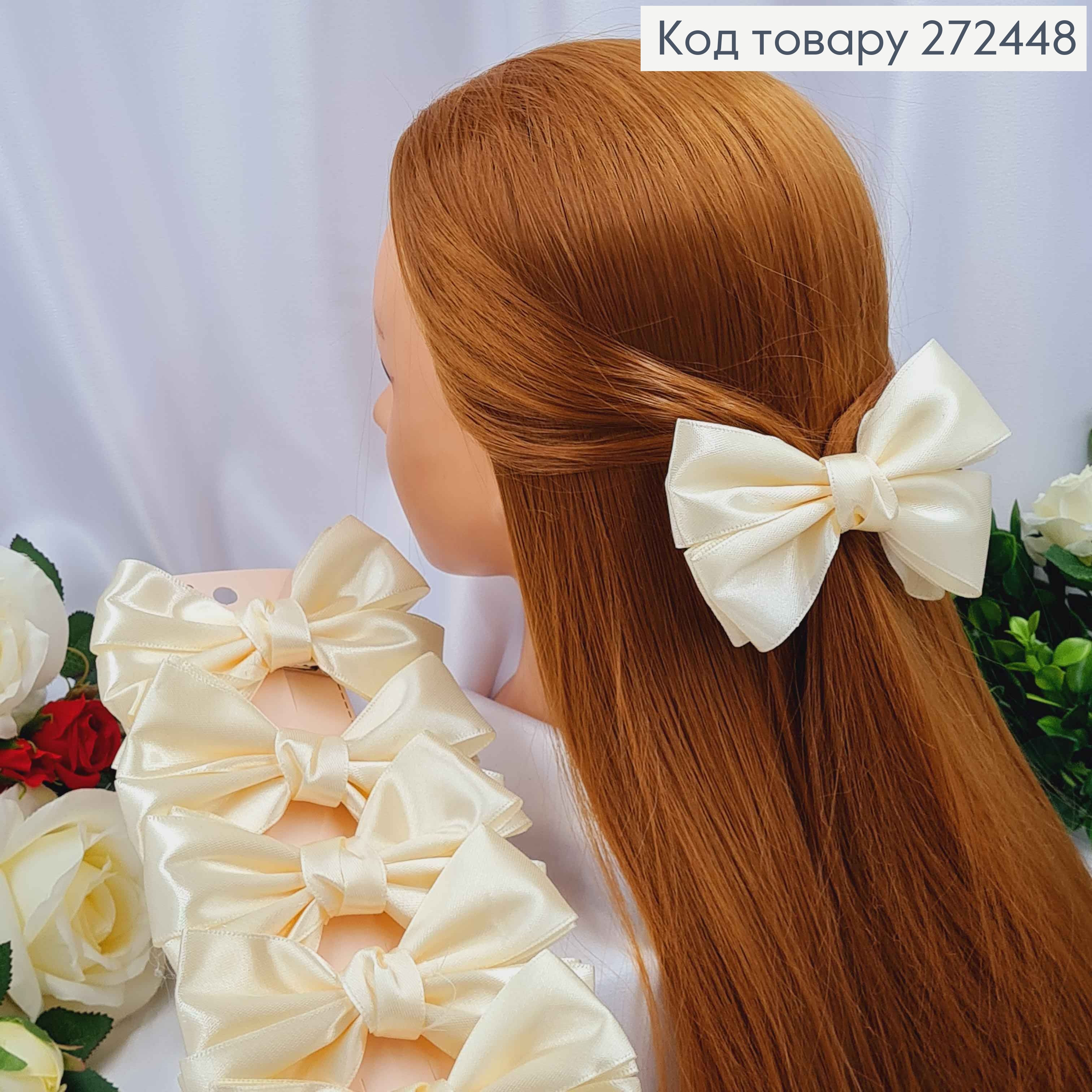 Заколка (1шт) БАНТИК молочний, атлас 4см, размер 12*7см, ручная работа,УКРАИНА