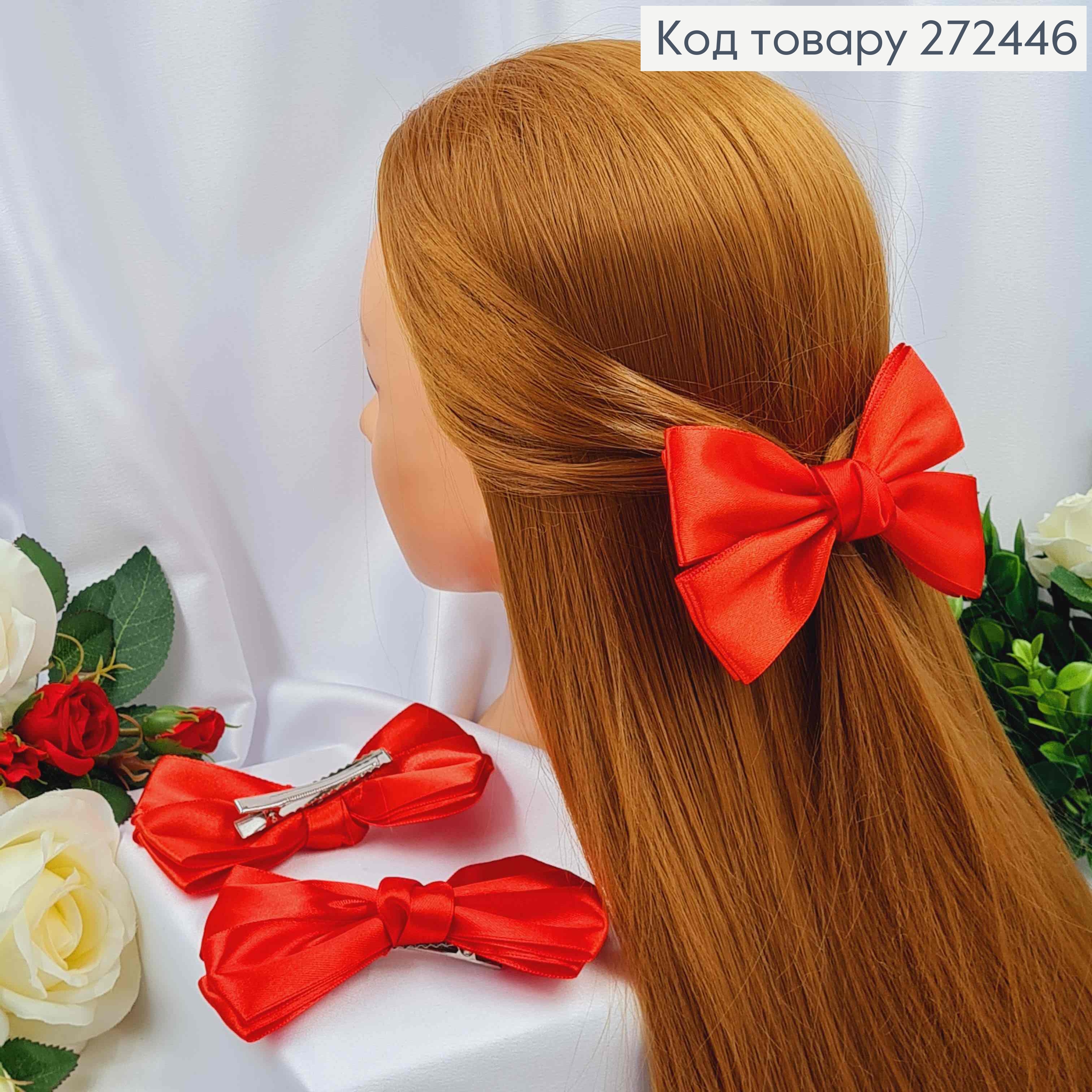 Заколка (1шт) БАНТИК красный атлас 4см, размер 12*7смсм, ручная работа , УКРАИНА
