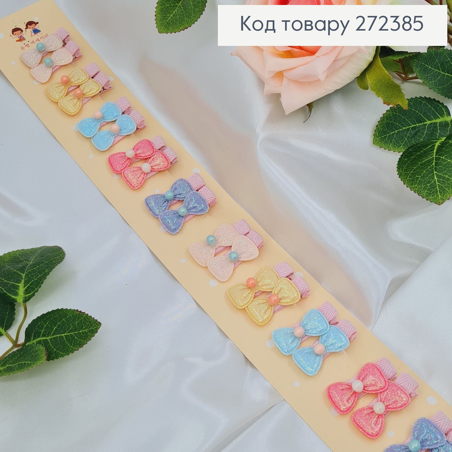 Набор заколка тик-так (20шт), "Бантик" с Камешками, Пастельные цвета, заколка 4,7см, бантик 2,5см. 271518 фото