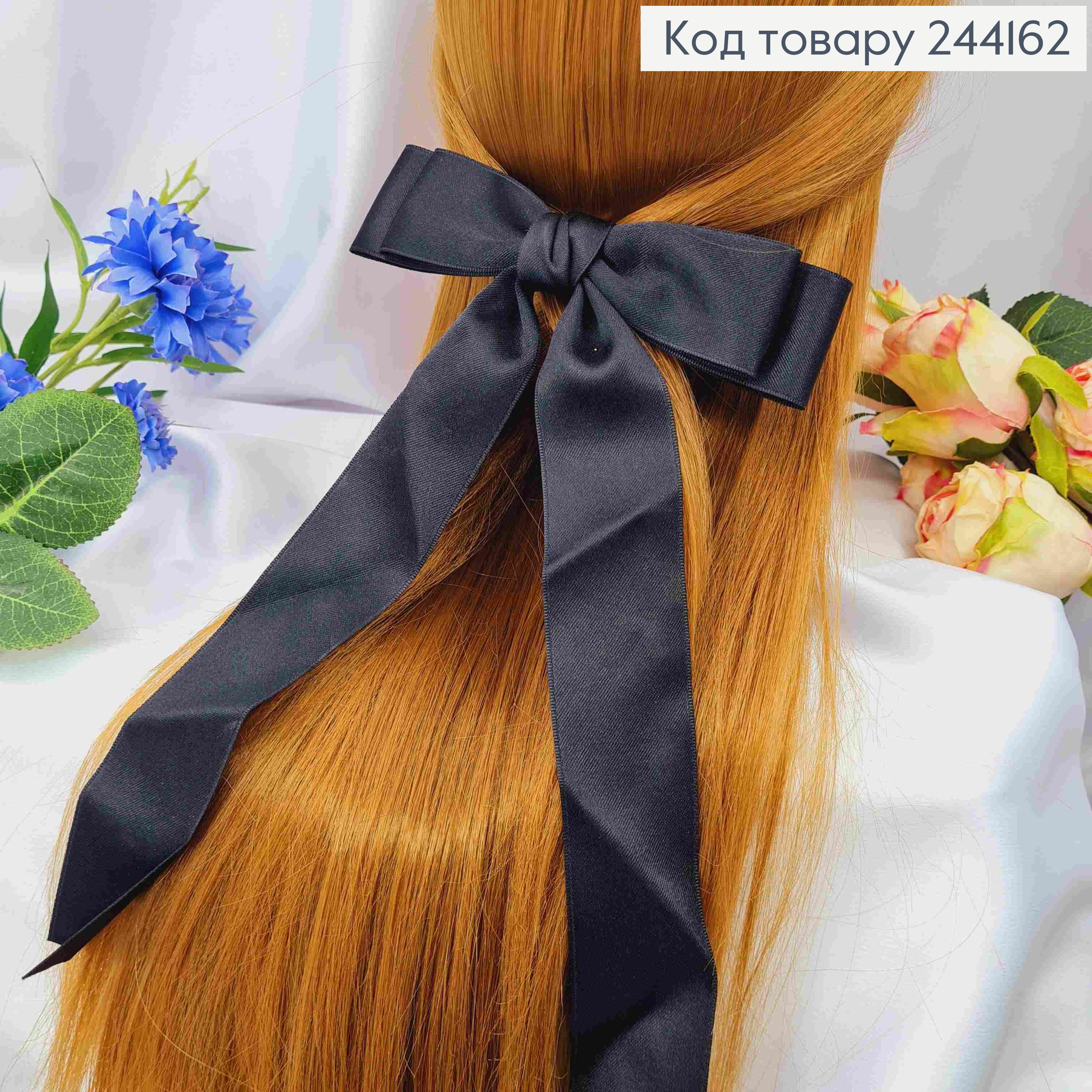 Заколка (5,5см) БАНТ ЧЕРНОГО цвета, ткань плотный атлас, размер 14*25см
