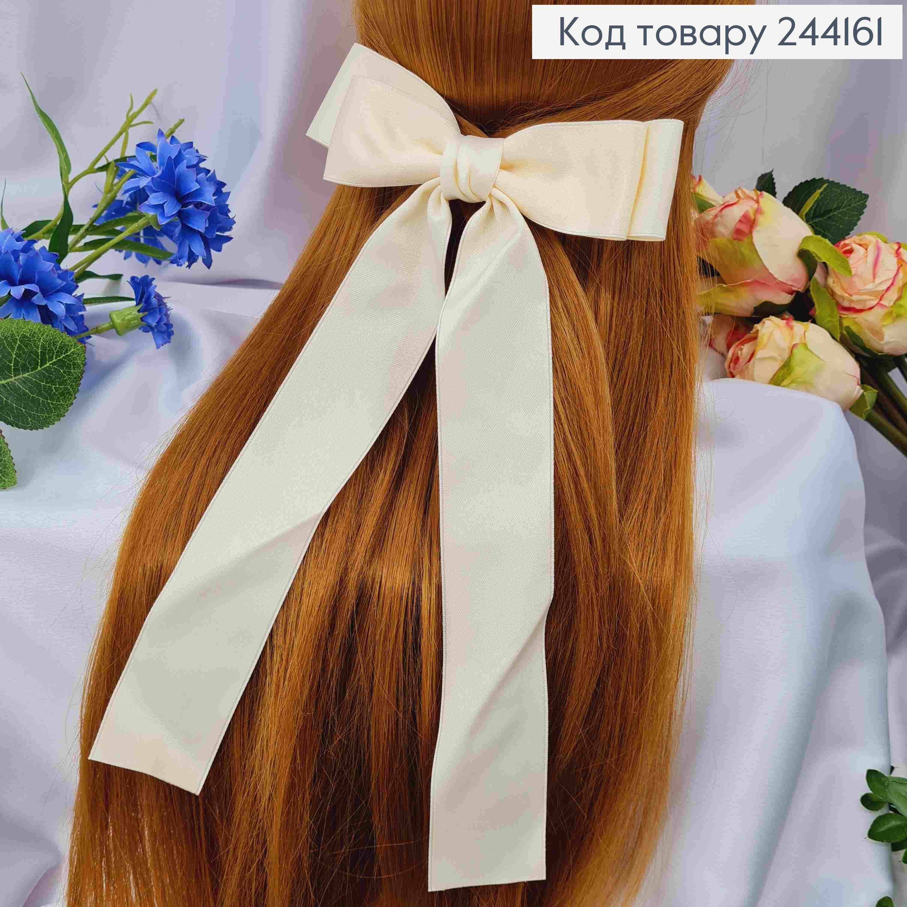 Заколка (5,5см) БАНТ КРЕМОВОГО цвета, ткань плотный атлас, размер 14*25см