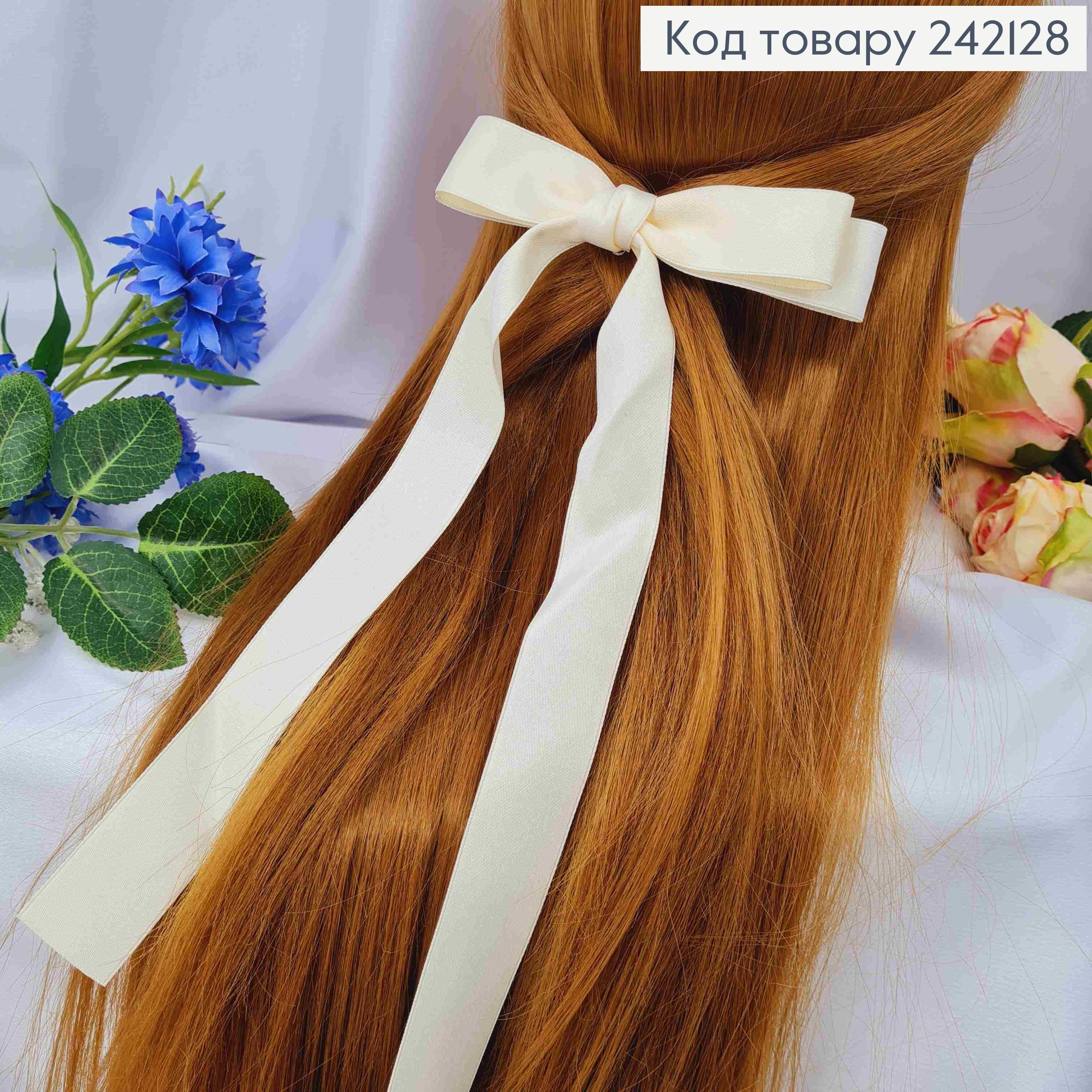 Заколка (6,5см), БАНТ КРЕМОВОГО цвета, ткань плотный атлас, размер 13*24,5см.
