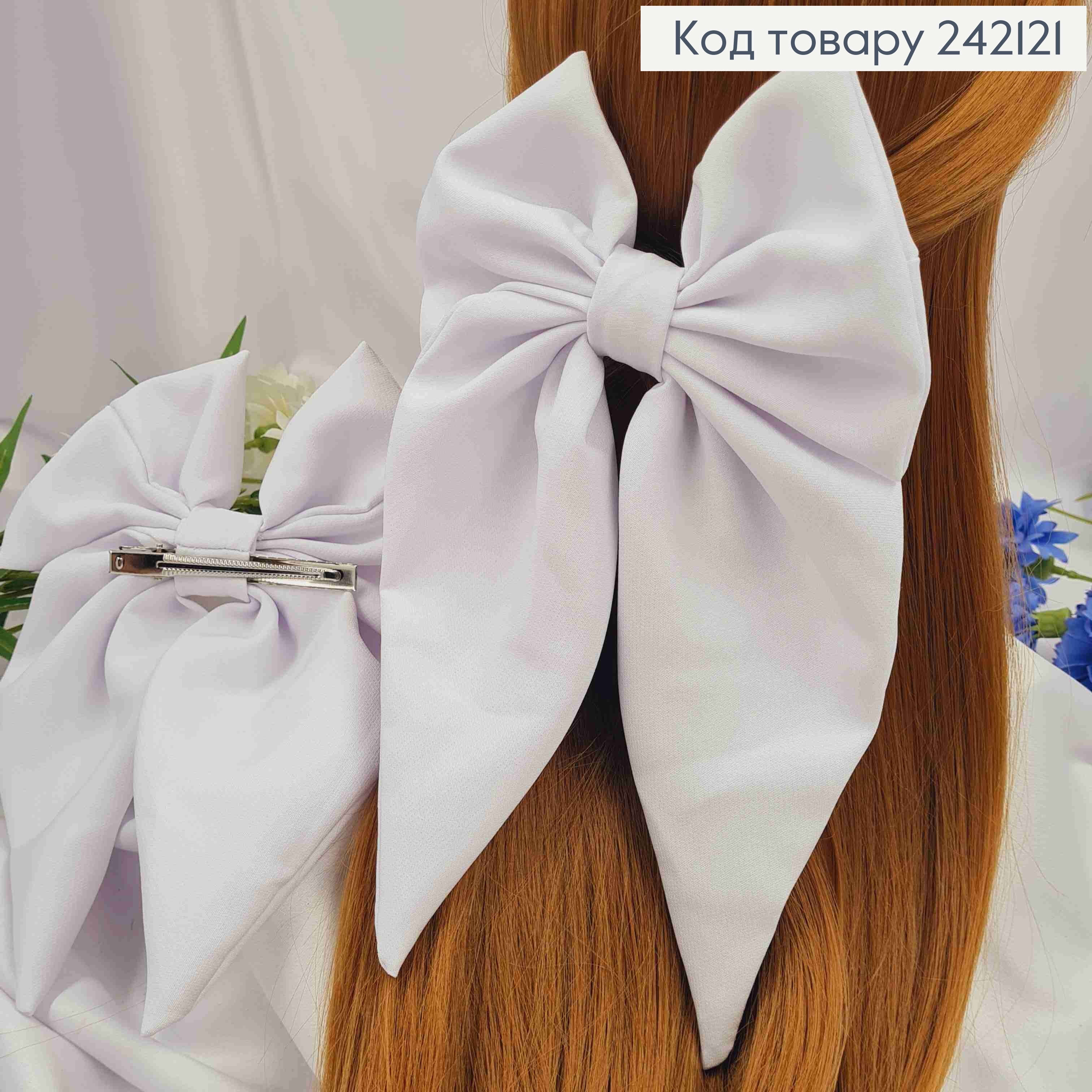 Бант БЕЛОГО цвета, на заколке 5,5см, ткань кружево+атлас, размер 15*25см, Украина. 276158 фото