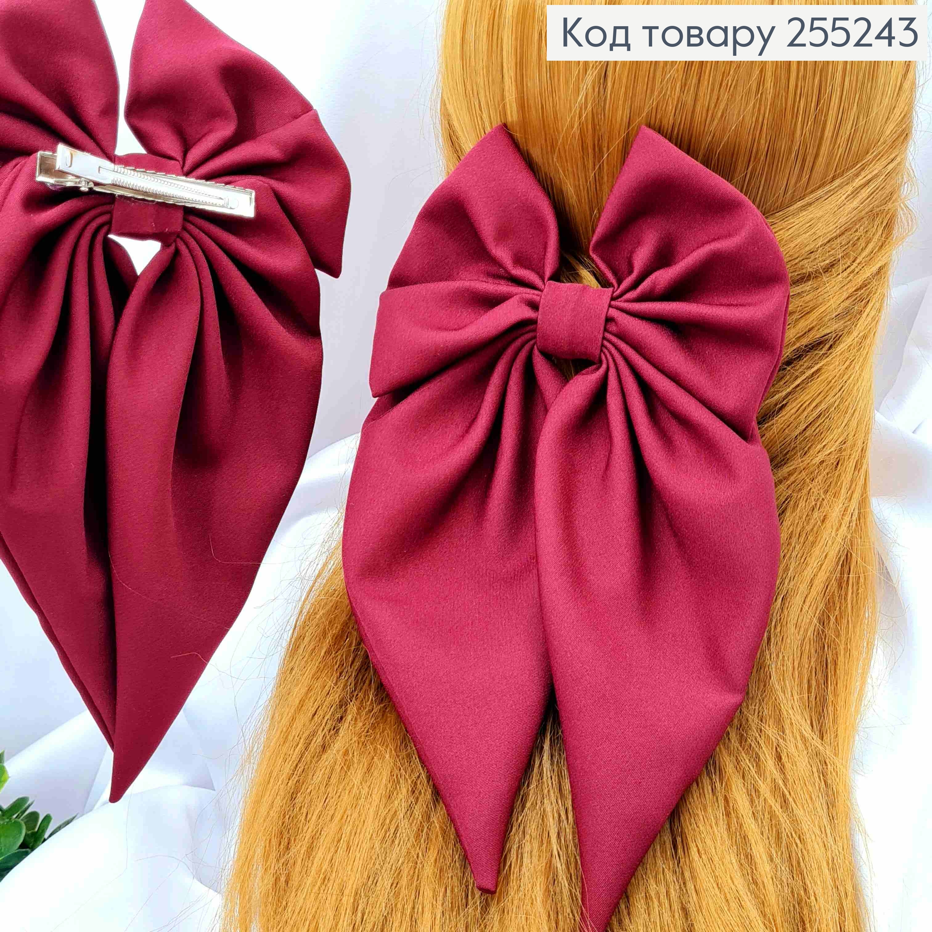Заколка (7,5см) БАНТ БОРДОВОГО цвета, ткань креп, размер 14*23см, Украина