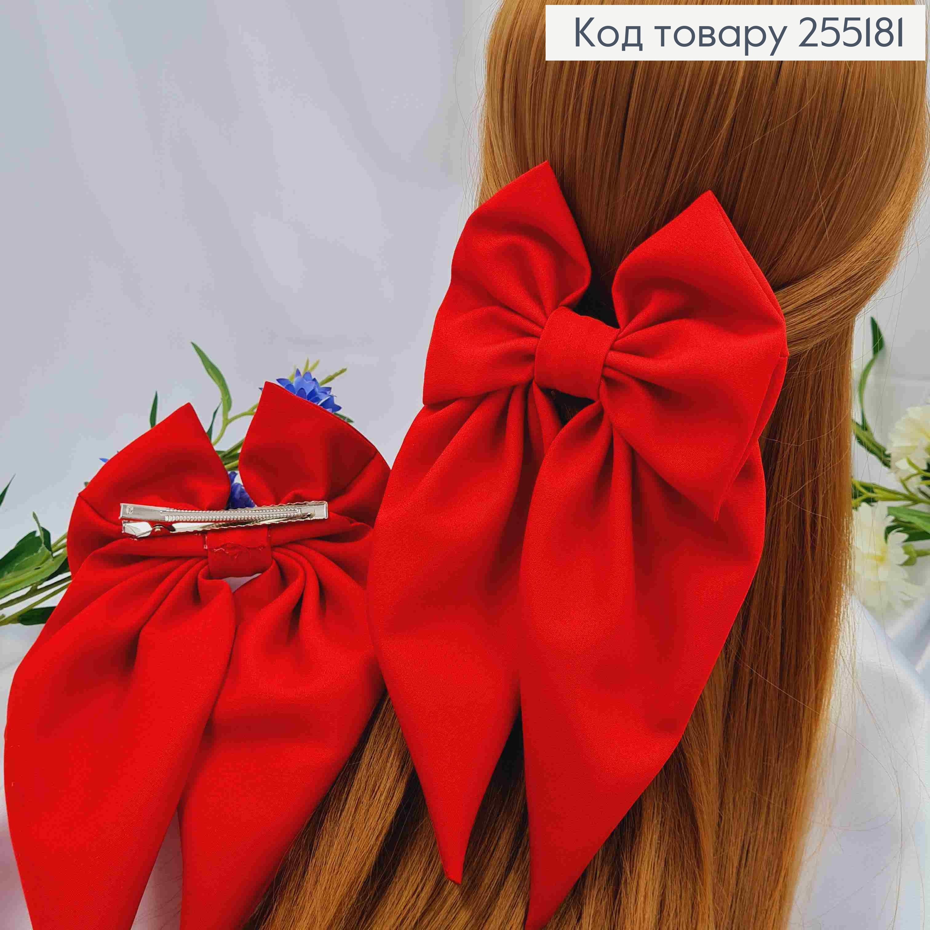 Заколка (7,5см) БАНТ КРАСНОГО цвета, ткань креп, размер 13*25см, Украина.
