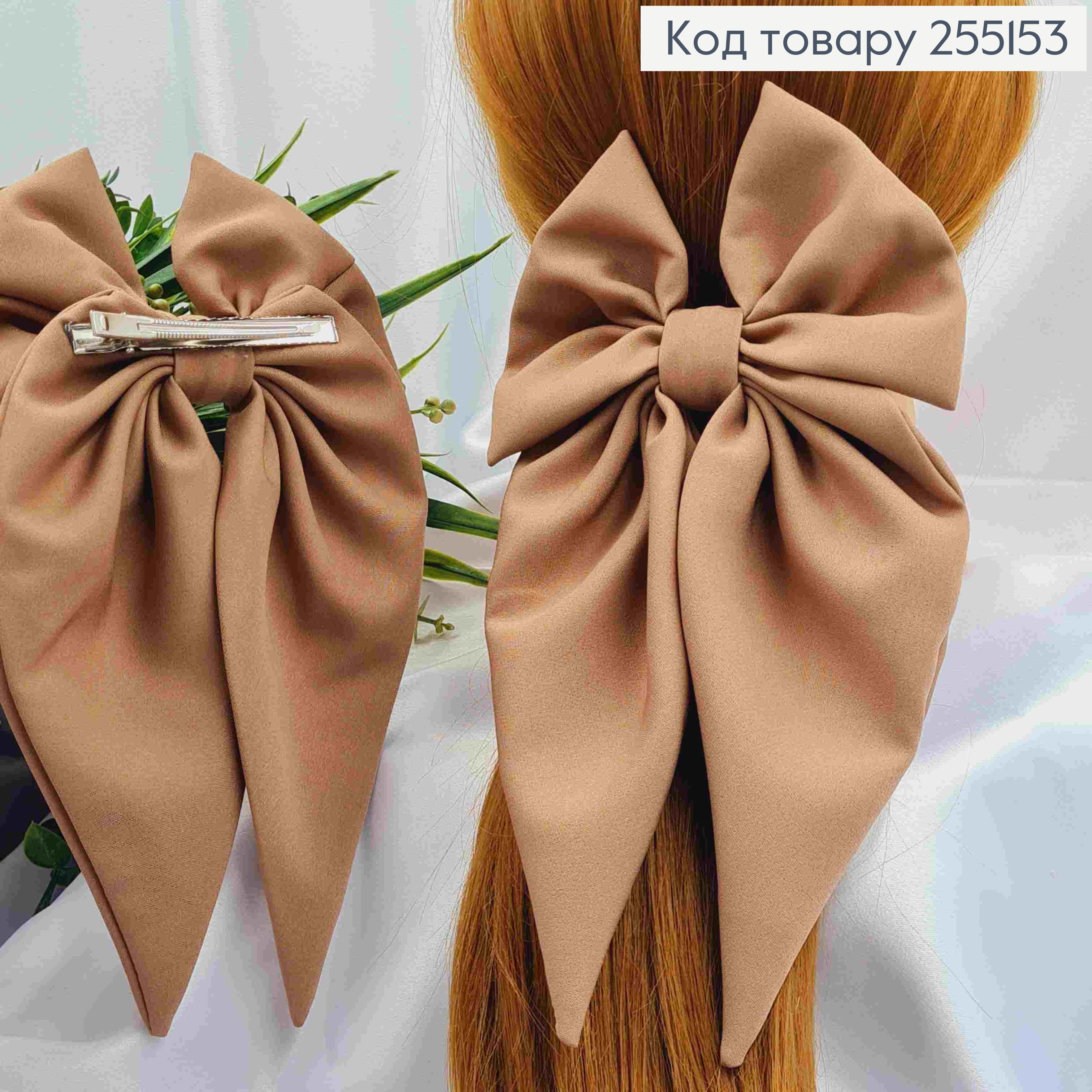 Заколка (7,5см) БАНТ цвета КАПУЧИНО, ткань плотный атлас, размер 14*25см, Украина