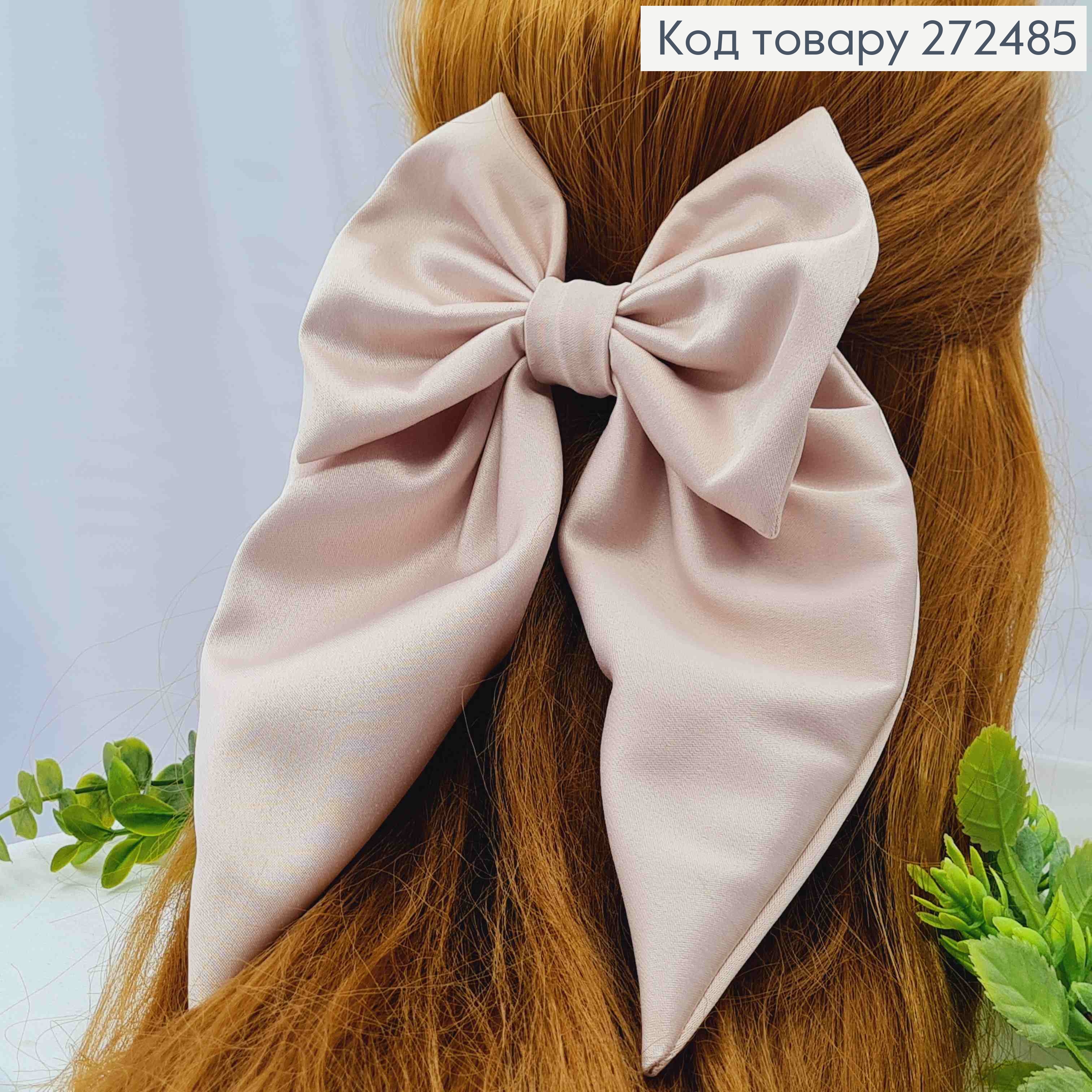 Бант ПУДРОВОГО цвета, заколка 7,5см, ткань плотный атлас, размер 13*23см, Украина.