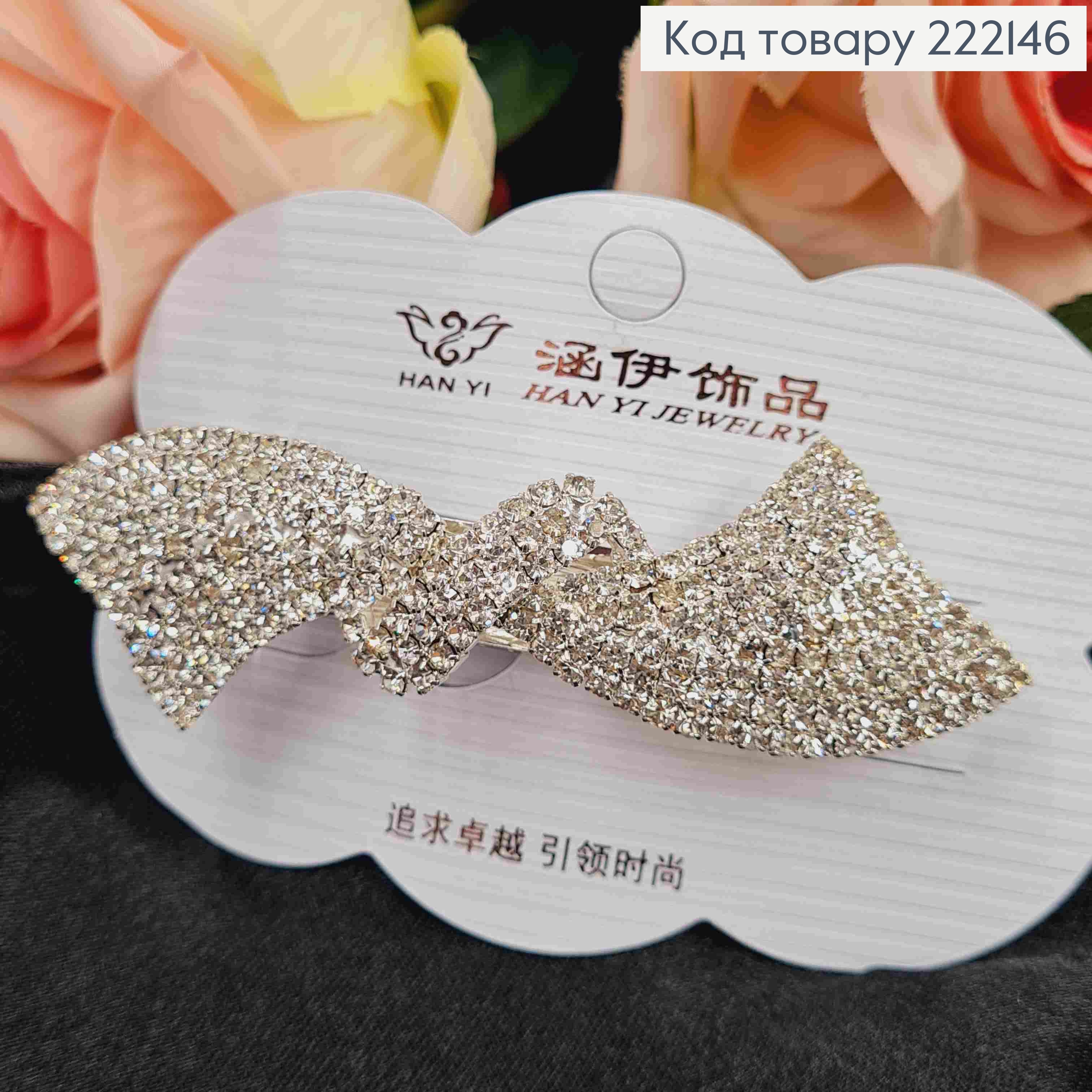 Заколка автоматик "ИЗЫСКАНЫЙ БАНТ" с Блестящими камнями, 6,5см, Черного цвета 222160 фото