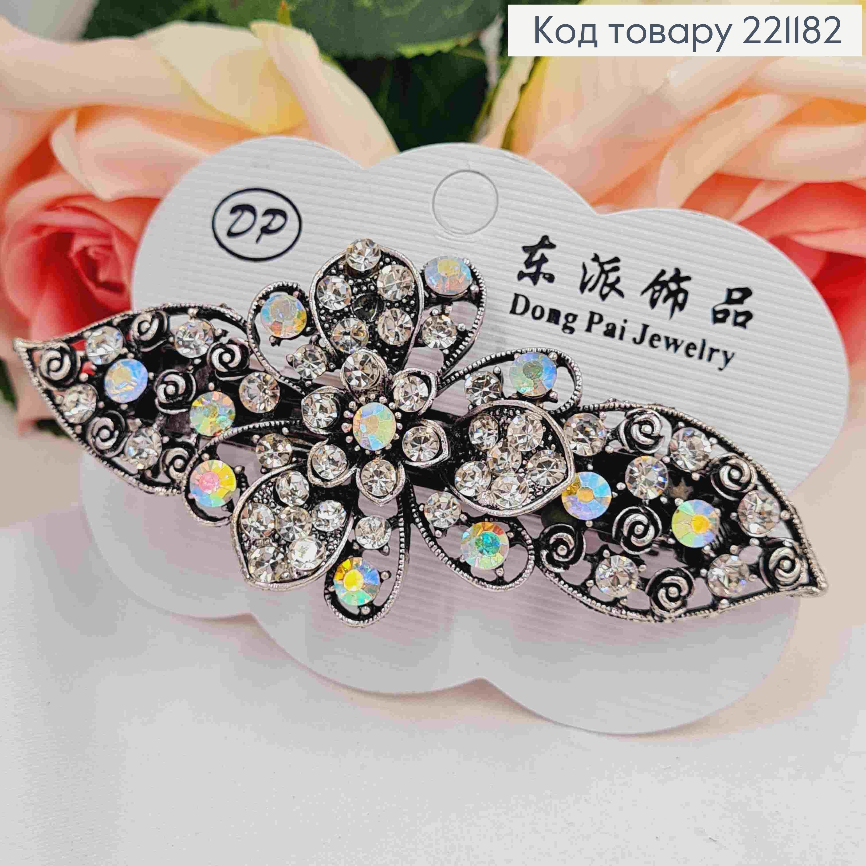 Заколка автомат, АЖУРНЫЙ ЦВЕТОК с камешками цвета Хамелеон, цвета Металлик, 10см