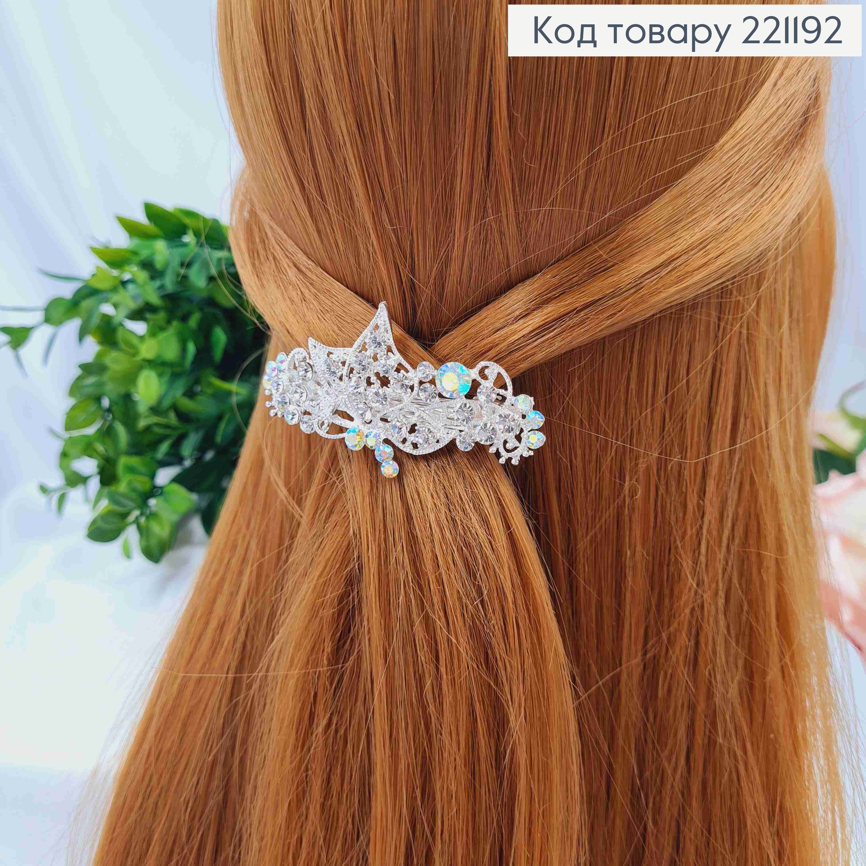 Заколка автомат металлическая "ЗВЕЗДКИ" с Блестящими камешками, 7*2см, Серебряного цвета 221210 фото