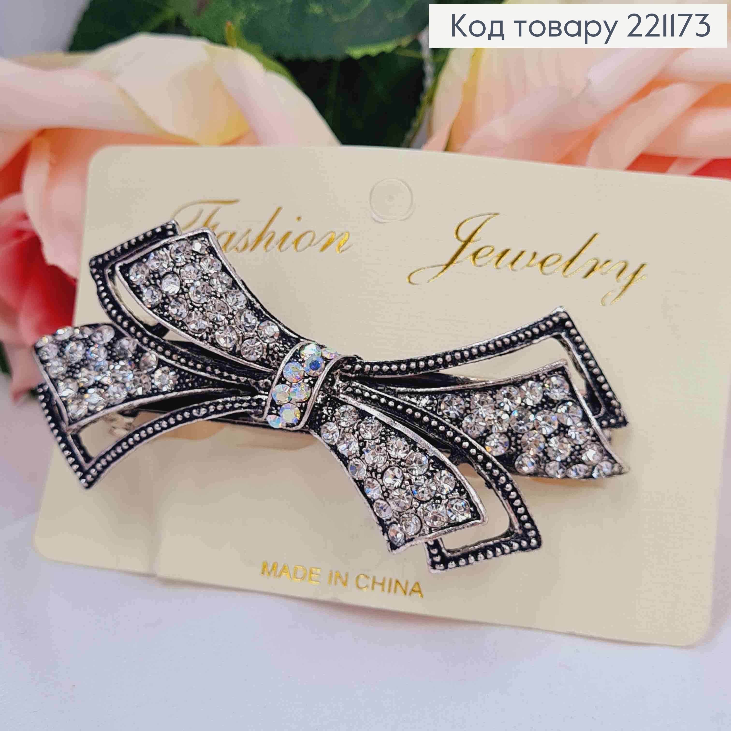 Заколка автоматик "Бантик" с блестящими камешками и цепочками, 6,5*6+9см, Серебряного цвета. 222169 фото