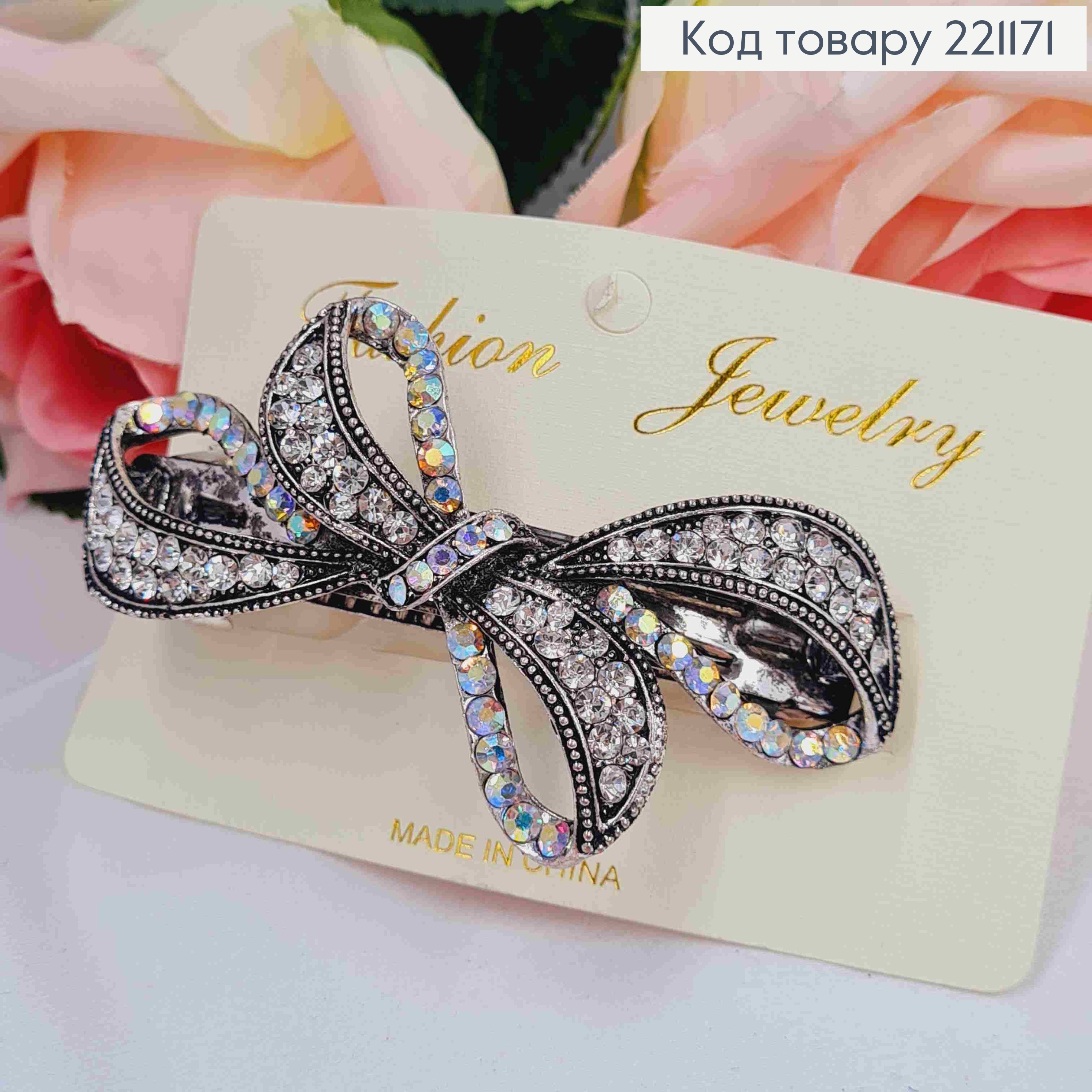Заколка автоматик "Бантик" с блестящими камешками и цепочками, 6,5*6+9см, Серебряного цвета. 222169 фото