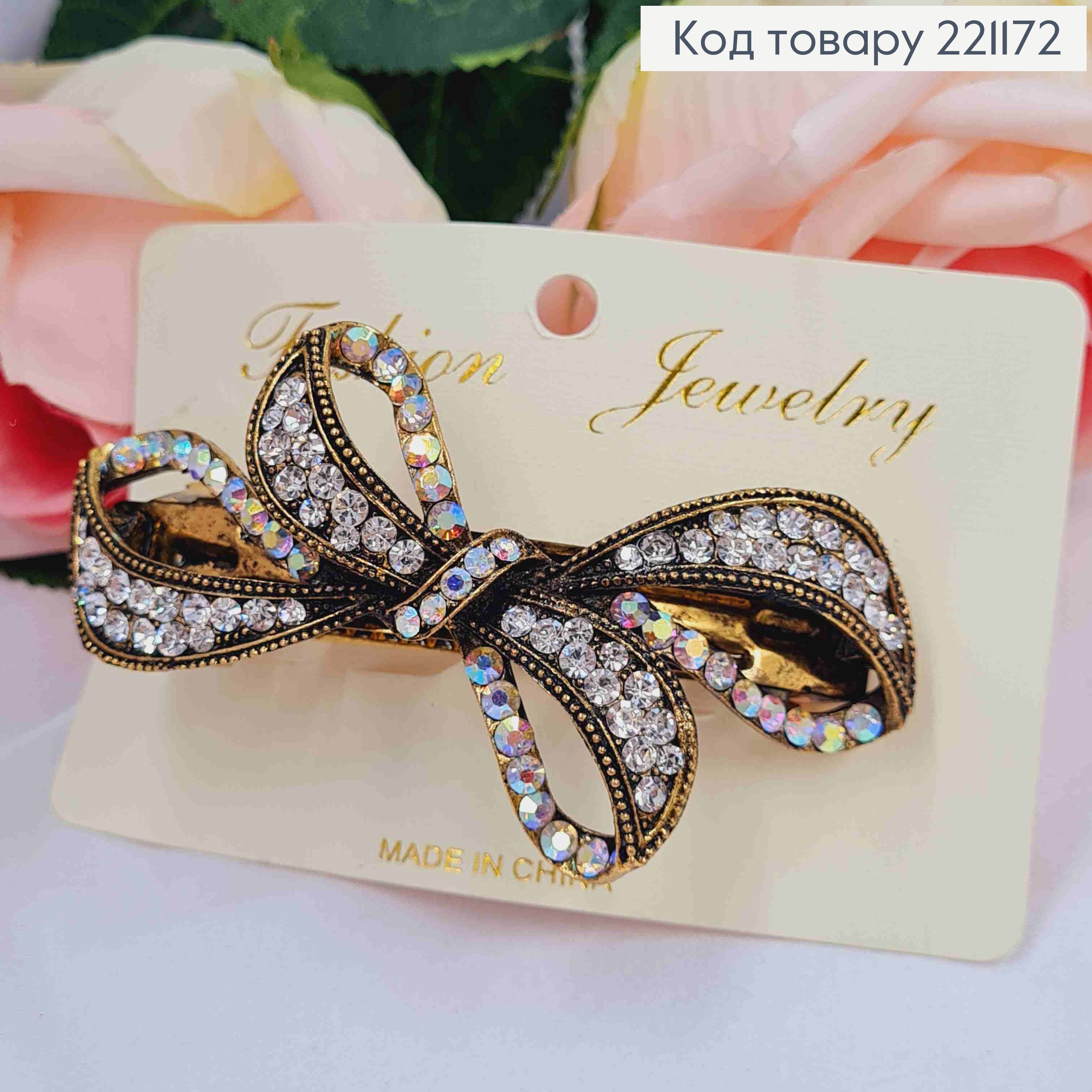 Заколка автоматик "ИЗЫСКАНЫЙ БАНТ" с Блестящими камнями, 6,5см, Золотого цвета 222159 фото
