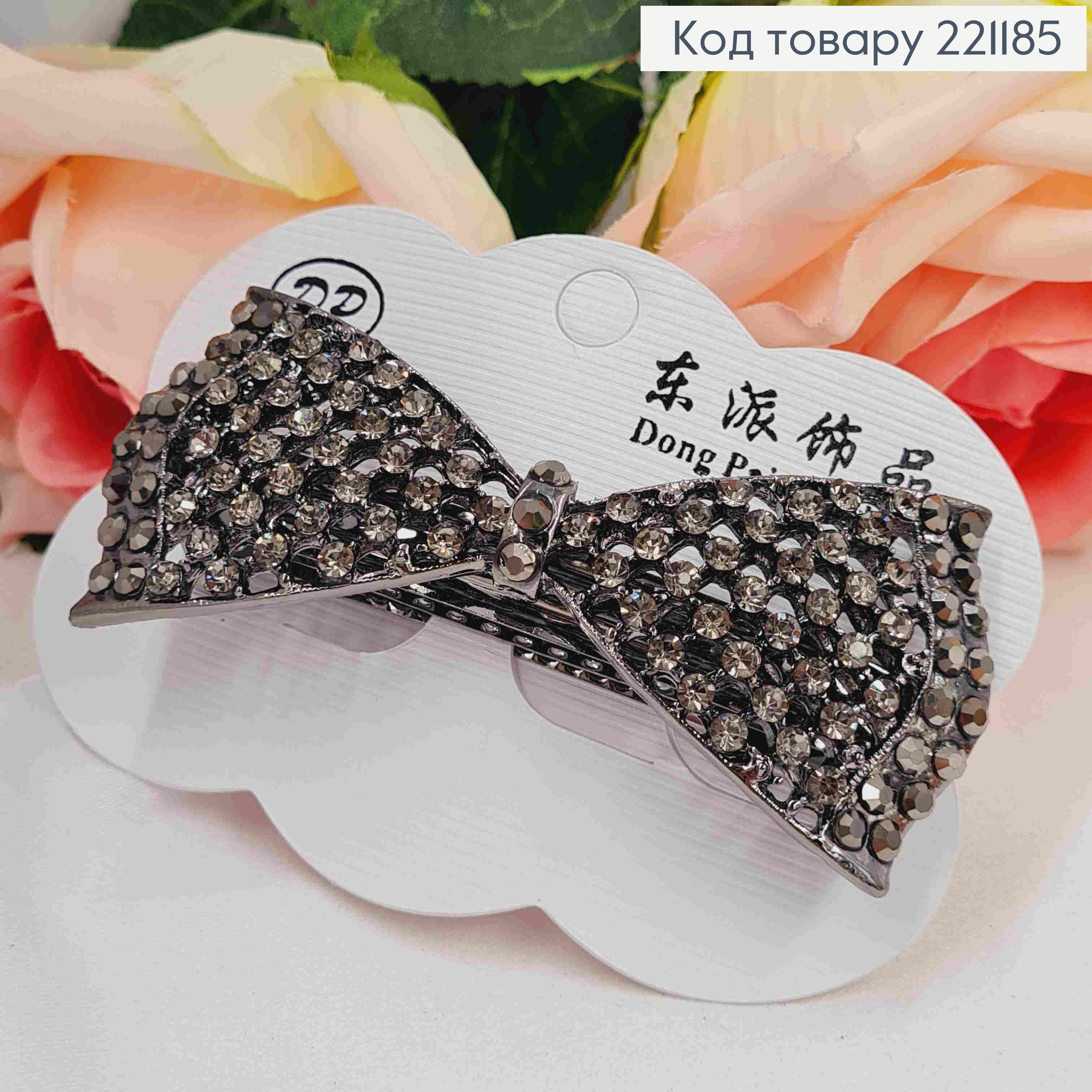 Заколка автомат, БАНТИК с камешками, Графитового цвета, 8,5см